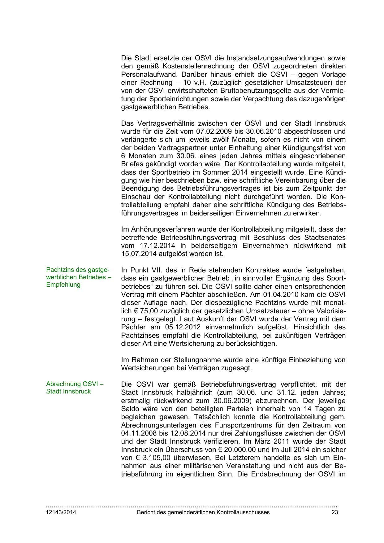 Das Vertragsverhältnis zwischen der OSVI und der Stadt Innsbruck