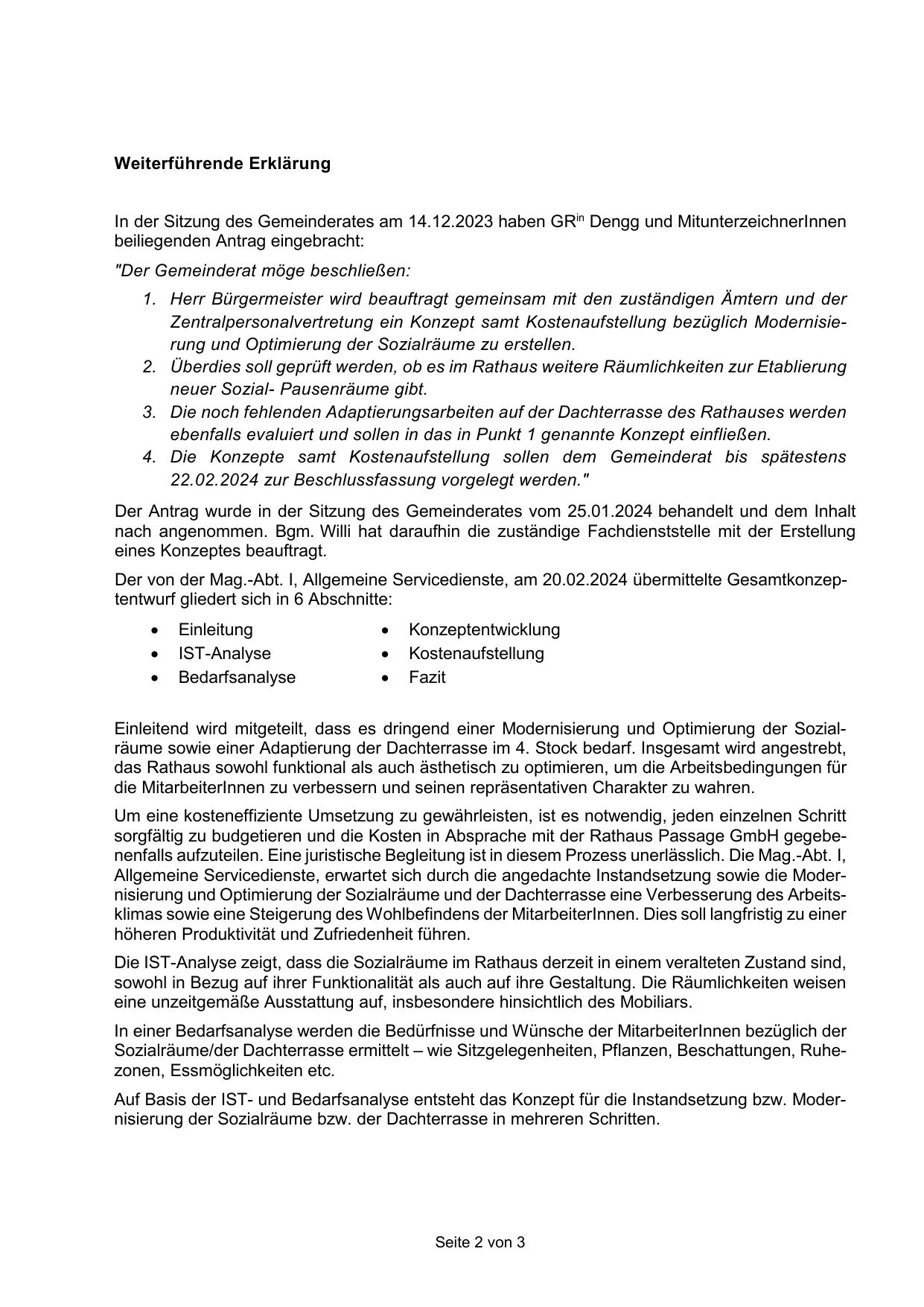 In der Sitzung des Gemeinderates am 14.12.2023 haben GRin Dengg und MitunterzeichnerInnen