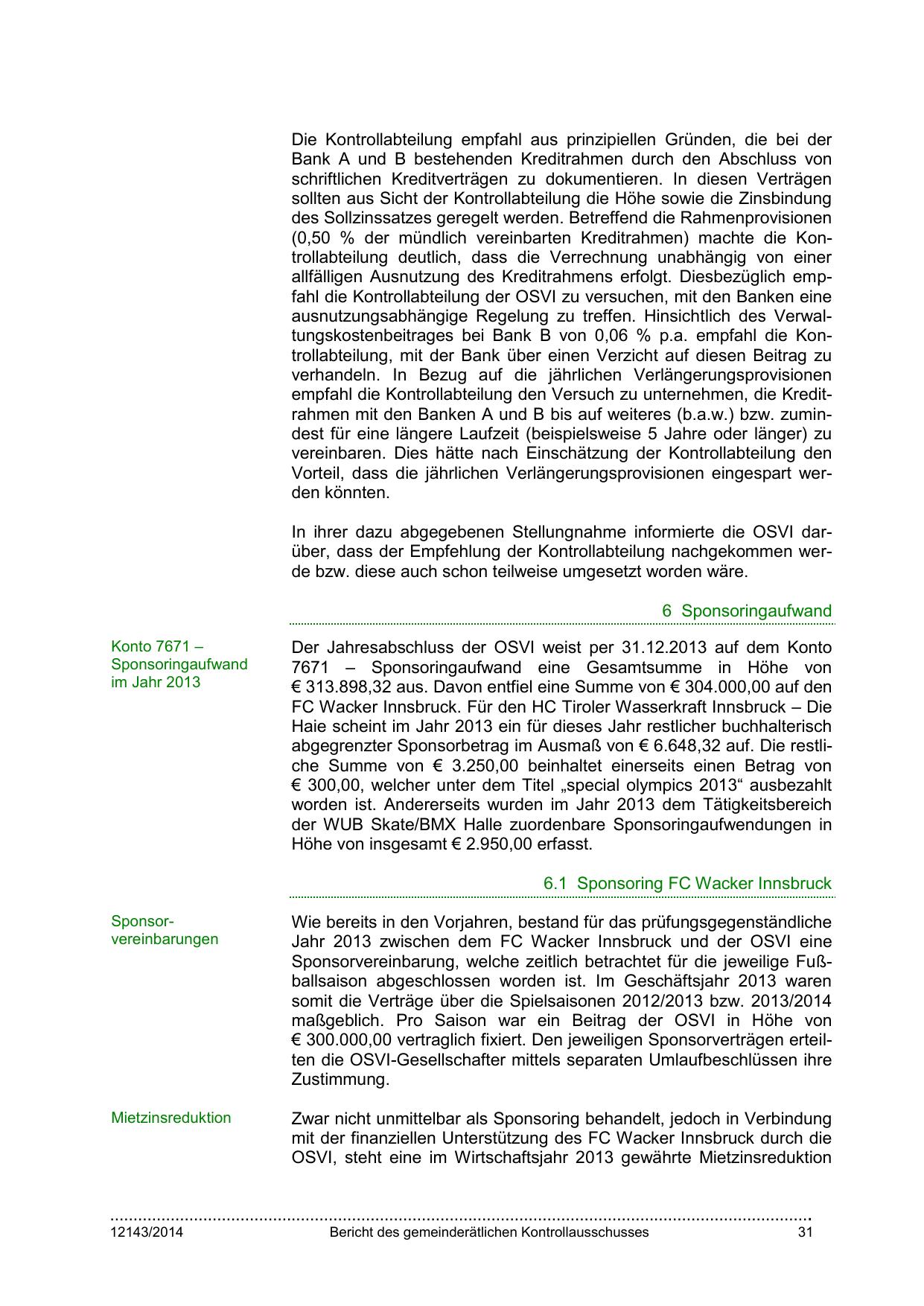 € 300.000,00 vertraglich fixiert. Den jeweiligen Sponsorverträgen erteilten die OSVI-Gesellschafter mittels separaten Umlaufbeschlüssen ihre