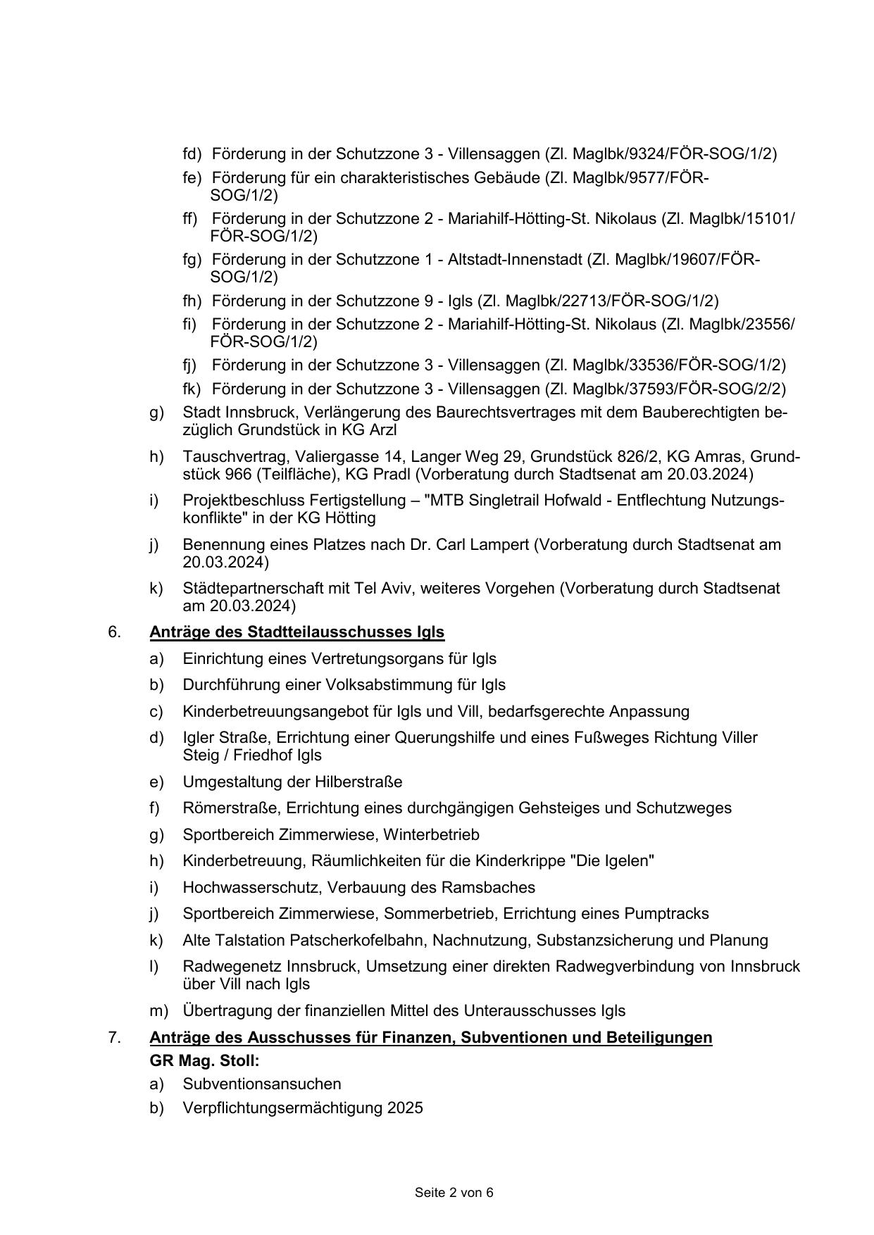 fh) Förderung in der Schutzzone 9 - Igls (Zl. Maglbk/22713/FÖR-SOG/1/2)