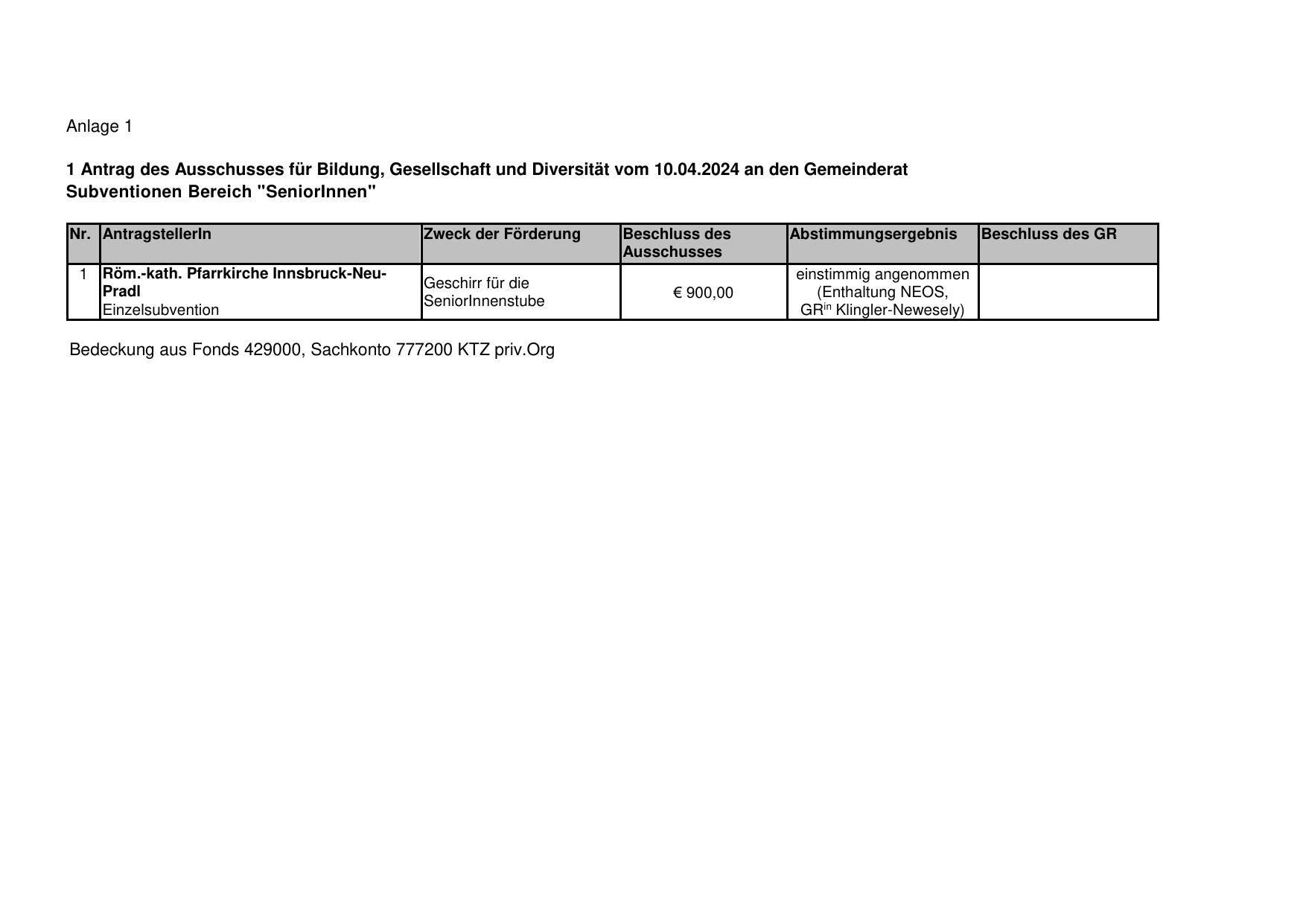 1 Antrag des Ausschusses für Bildung, Gesellschaft und Diversität vom 10.04.2024 an den Gemeinderat