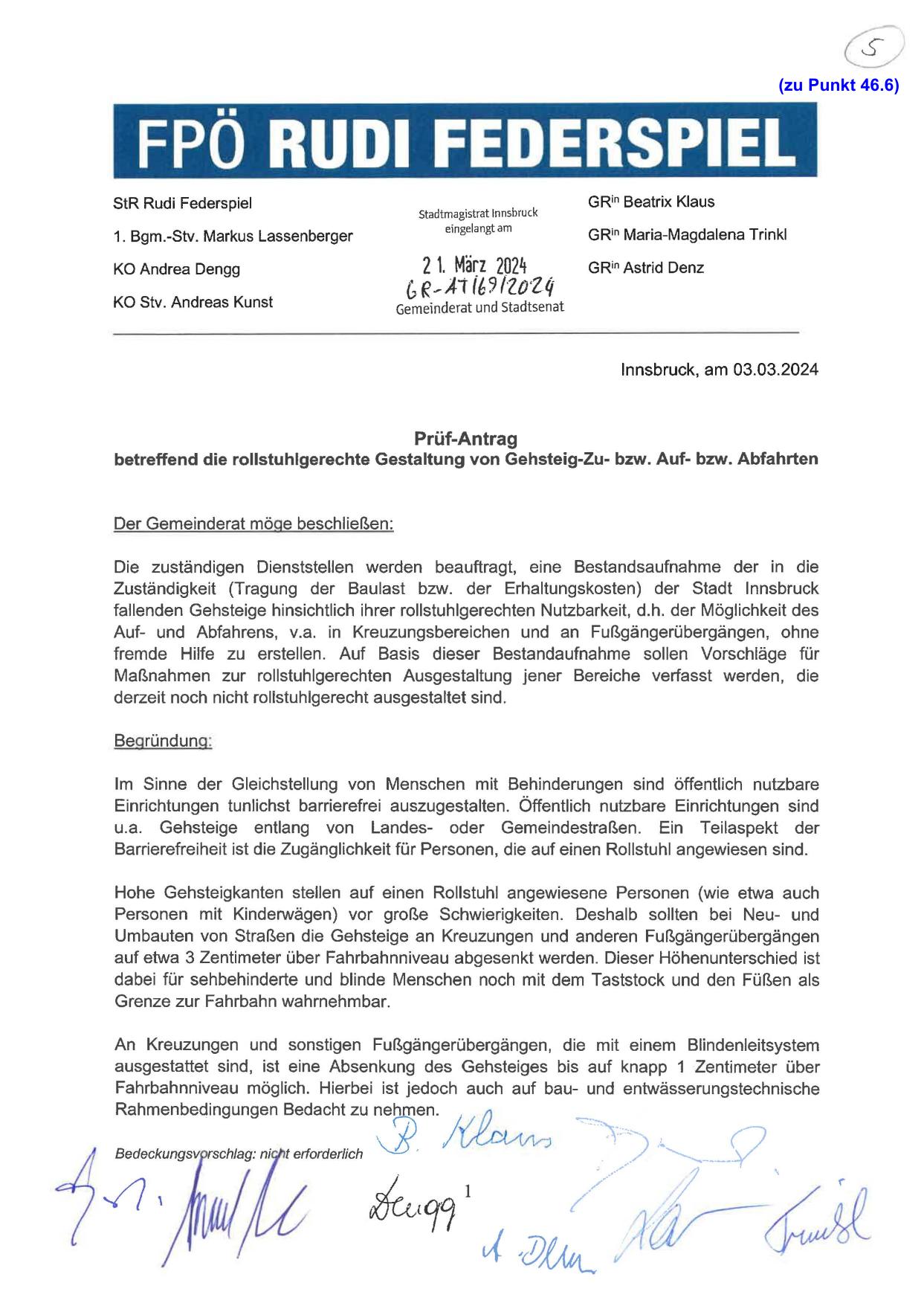 betreffend die rollstuhlgerechte Gestaltung von Gehsteig-Zu- bzw. Auf- bzw. Abfahrten
