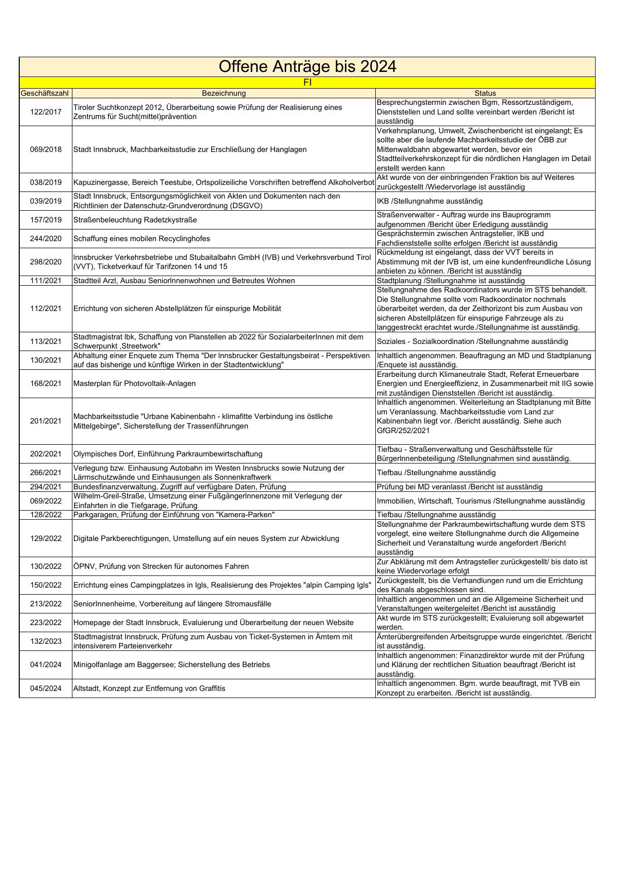 Offene Anträge bis 2024