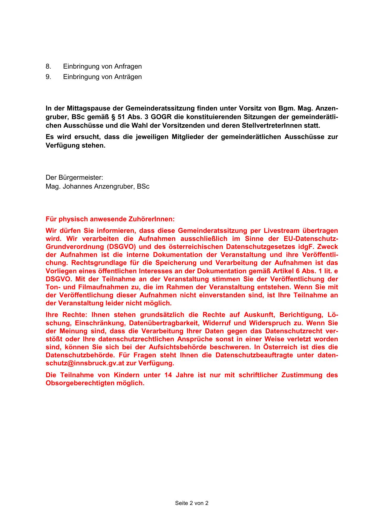 Wir dürfen Sie informieren, dass diese Gemeinderatssitzung per Livestream übertragen