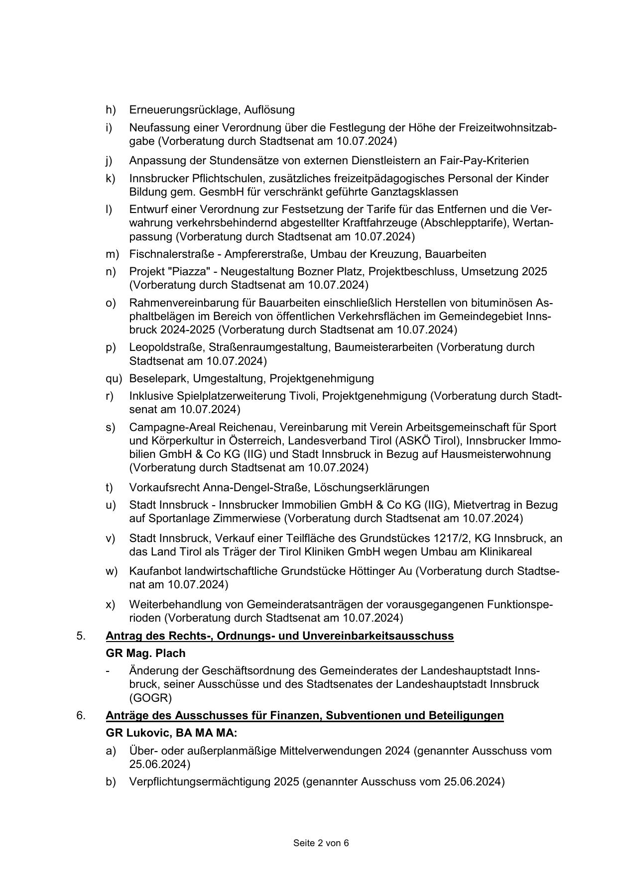 (Vorberatung durch Stadtsenat am 10.07.2024)