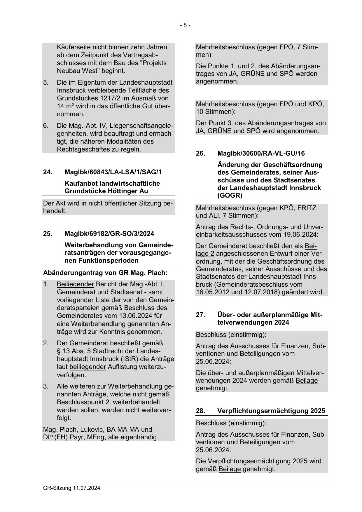Stadtsenates der Landeshauptstadt Innsbruck (Gemeinderatsbeschluss vom