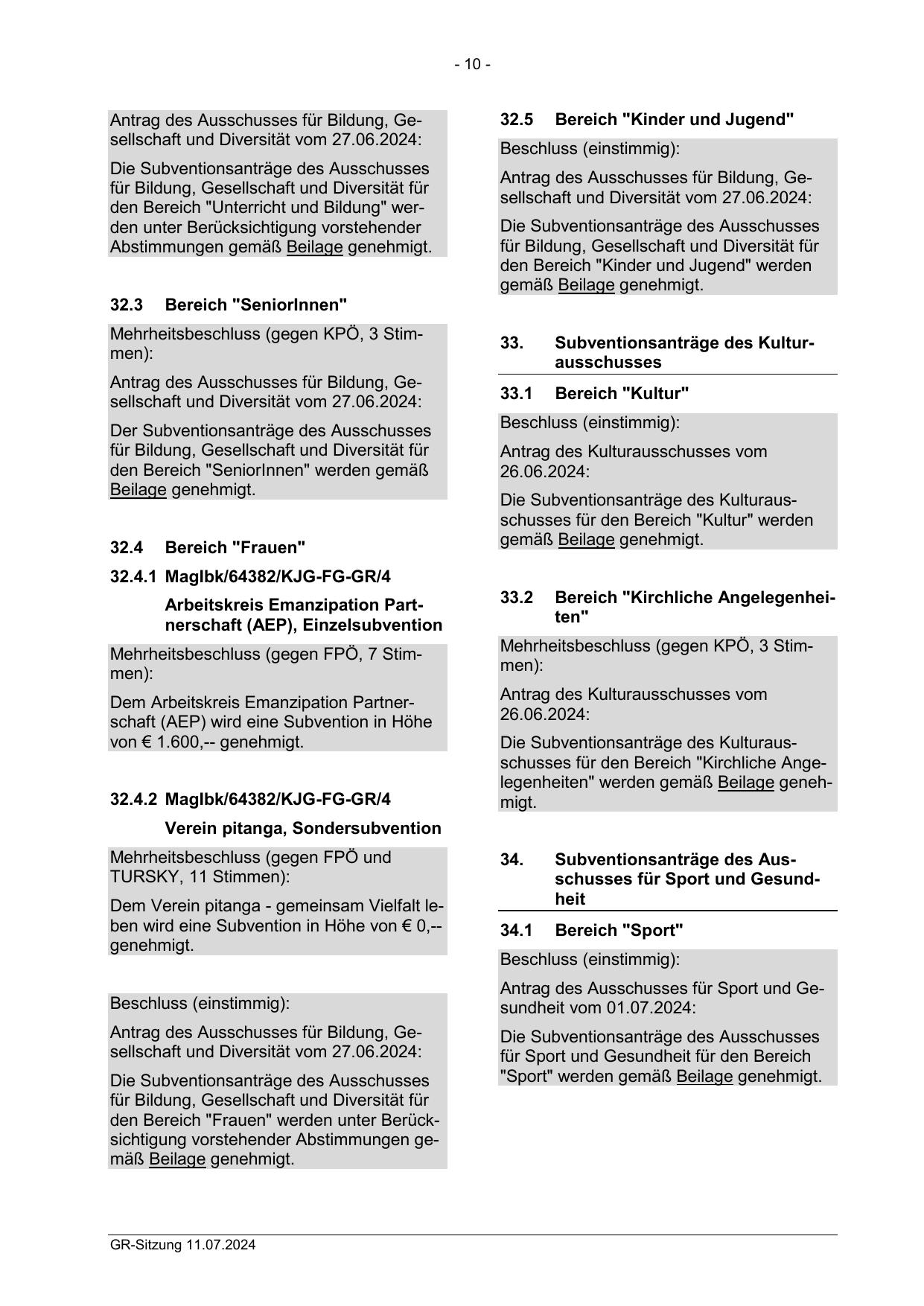 Mehrheitsbeschluss (gegen KPÖ, 3 Stimmen):