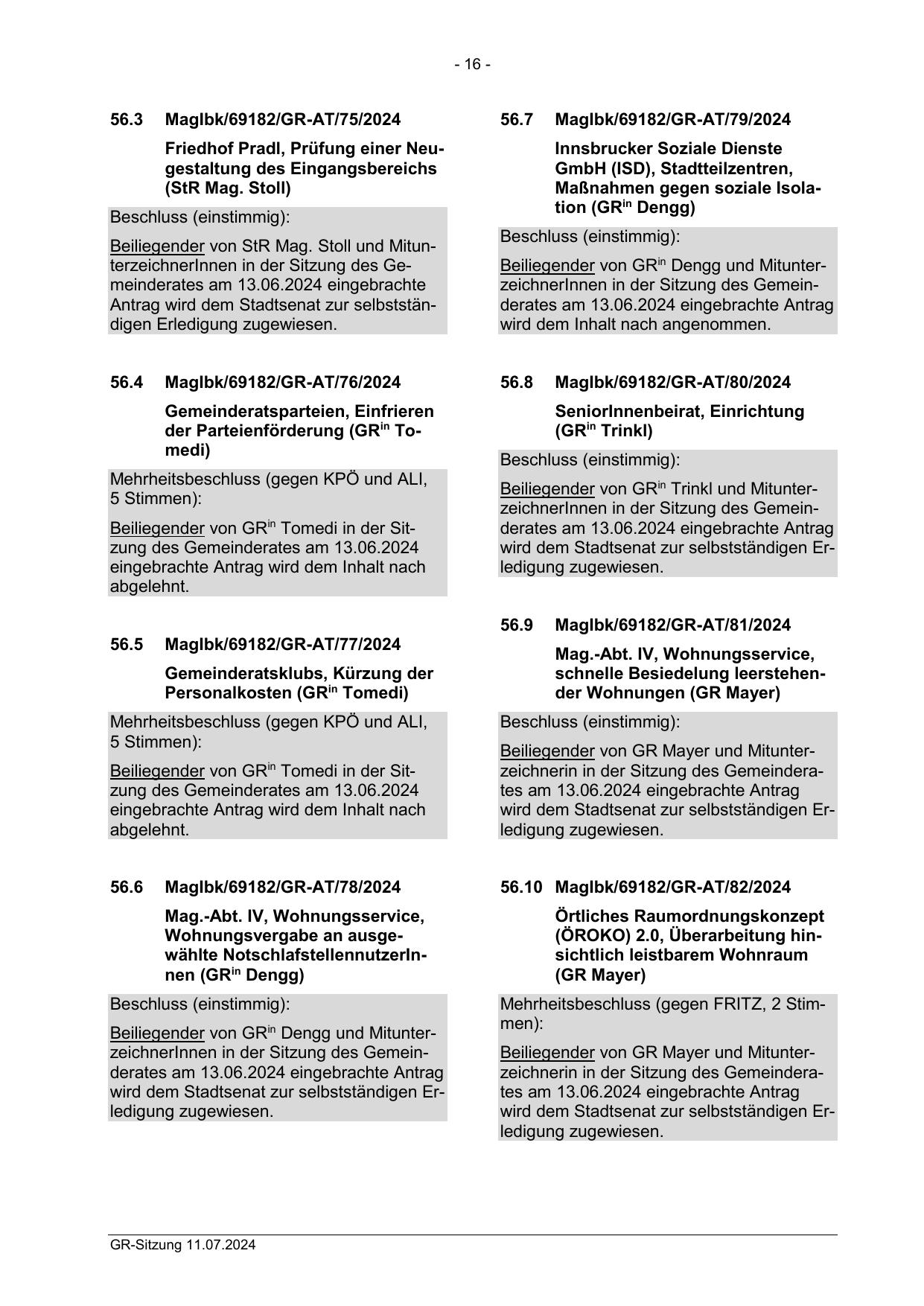 Beiliegender von GRin Tomedi in der Sitzung des Gemeinderates am 13.06.2024