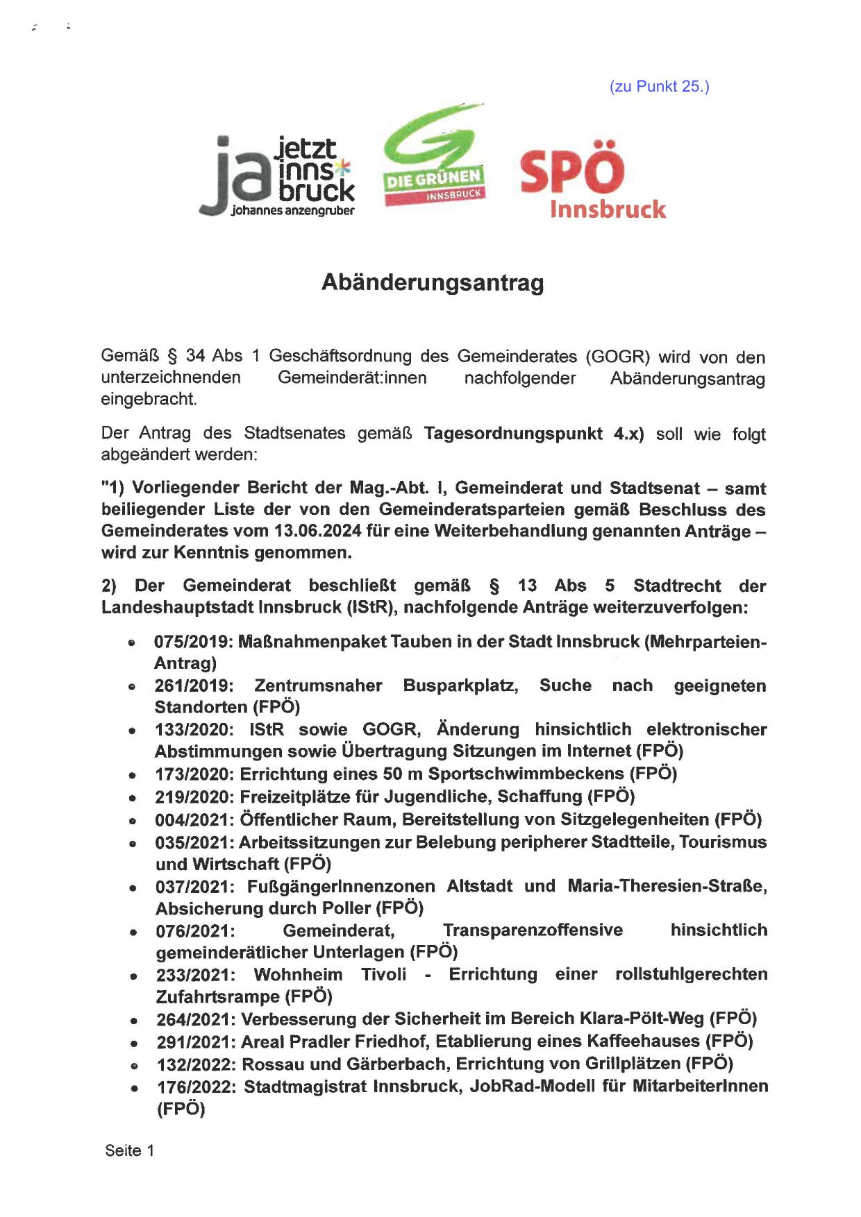 Landeshauptstadt Innsbruck (IStR), nachfolgende Anträge weiterzuverfolgen: