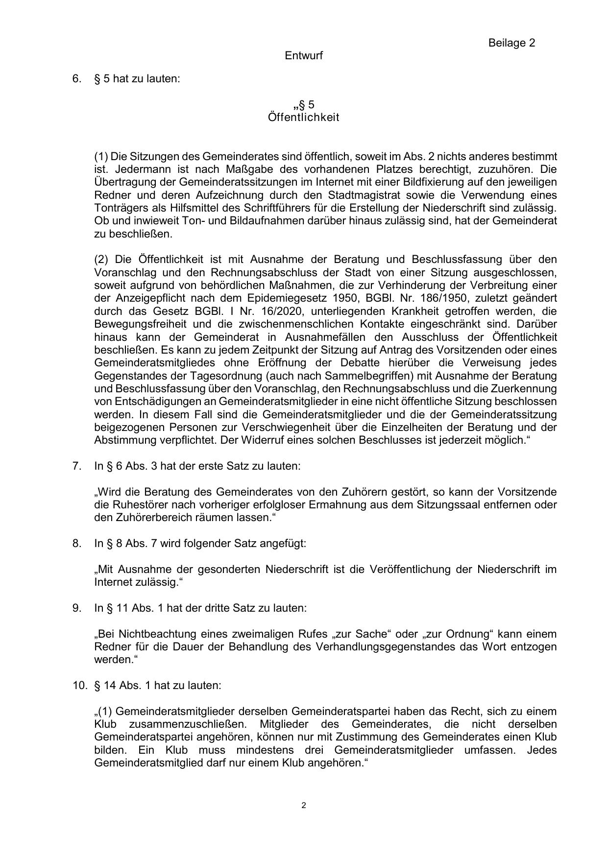 (1) Die Sitzungen des Gemeinderates sind öffentlich, soweit im Abs. 2 nichts anderes bestimmt