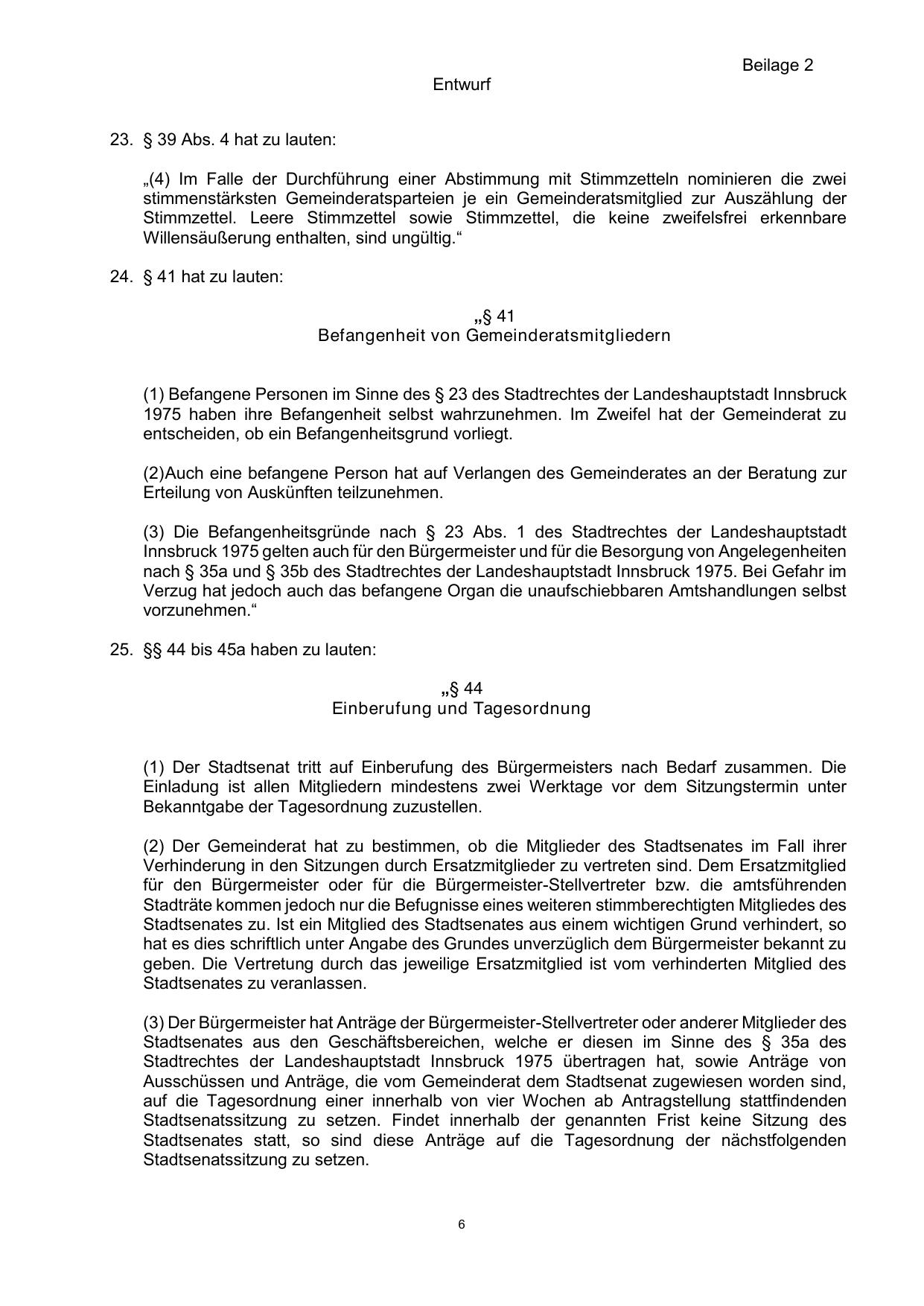 (1) Befangene Personen im Sinne des § 23 des Stadtrechtes der Landeshauptstadt Innsbruck