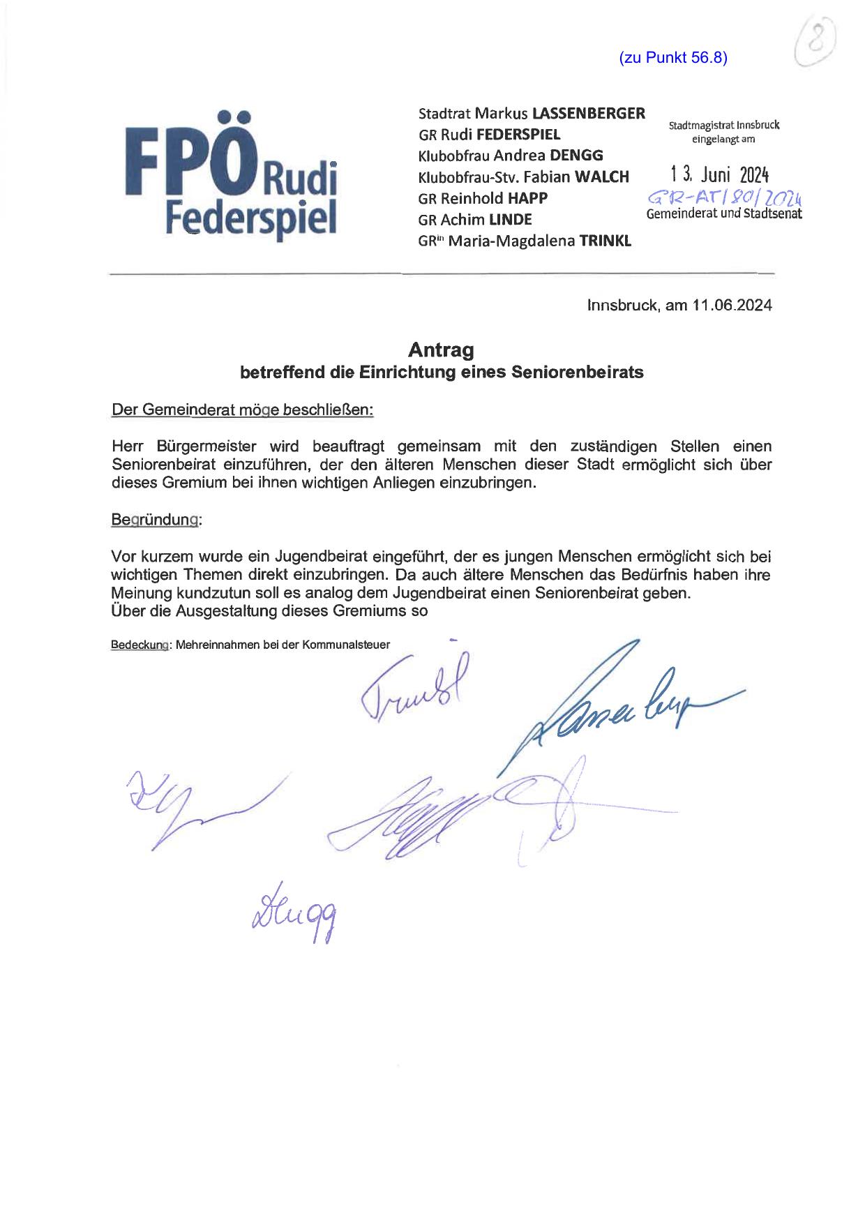 Seniorenbeirat einzuführen, der den älteren Menschen dieser Stadt ermöglicht sich über