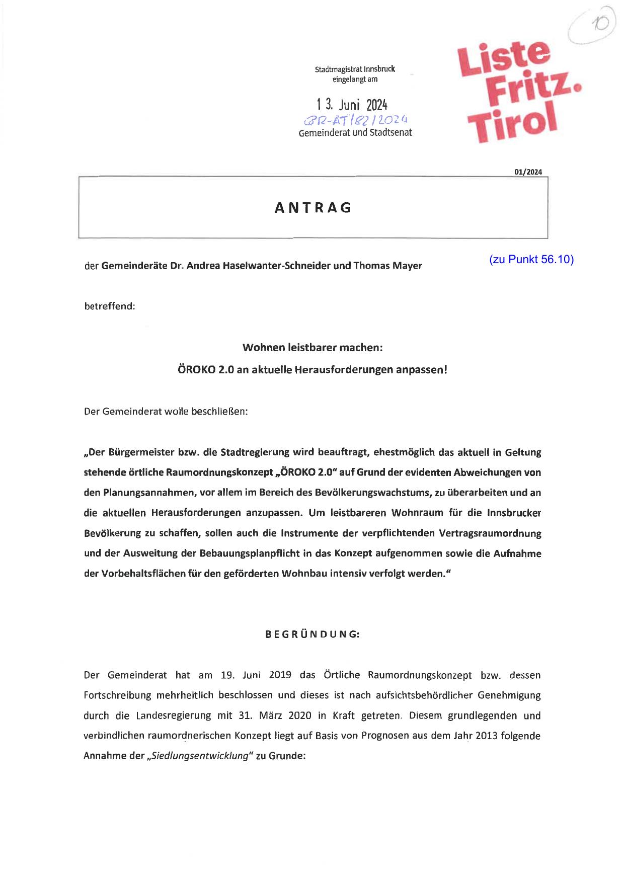 die aktuellen Herausforderungen anzupassen. Um leistbareren Wohnraum für die Innsbrucker