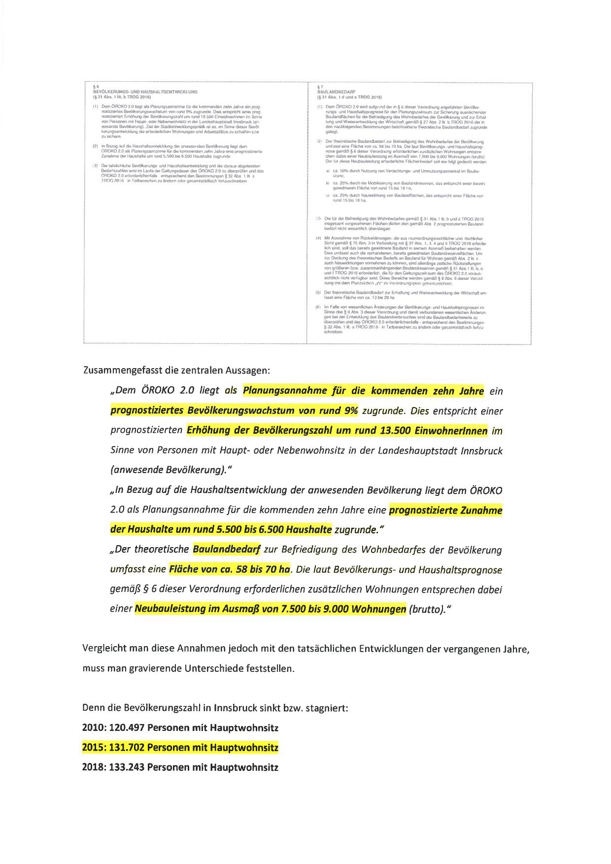 Denn die Bevölkerungszahtin Innsbruck sinkt bzw. stagniert: