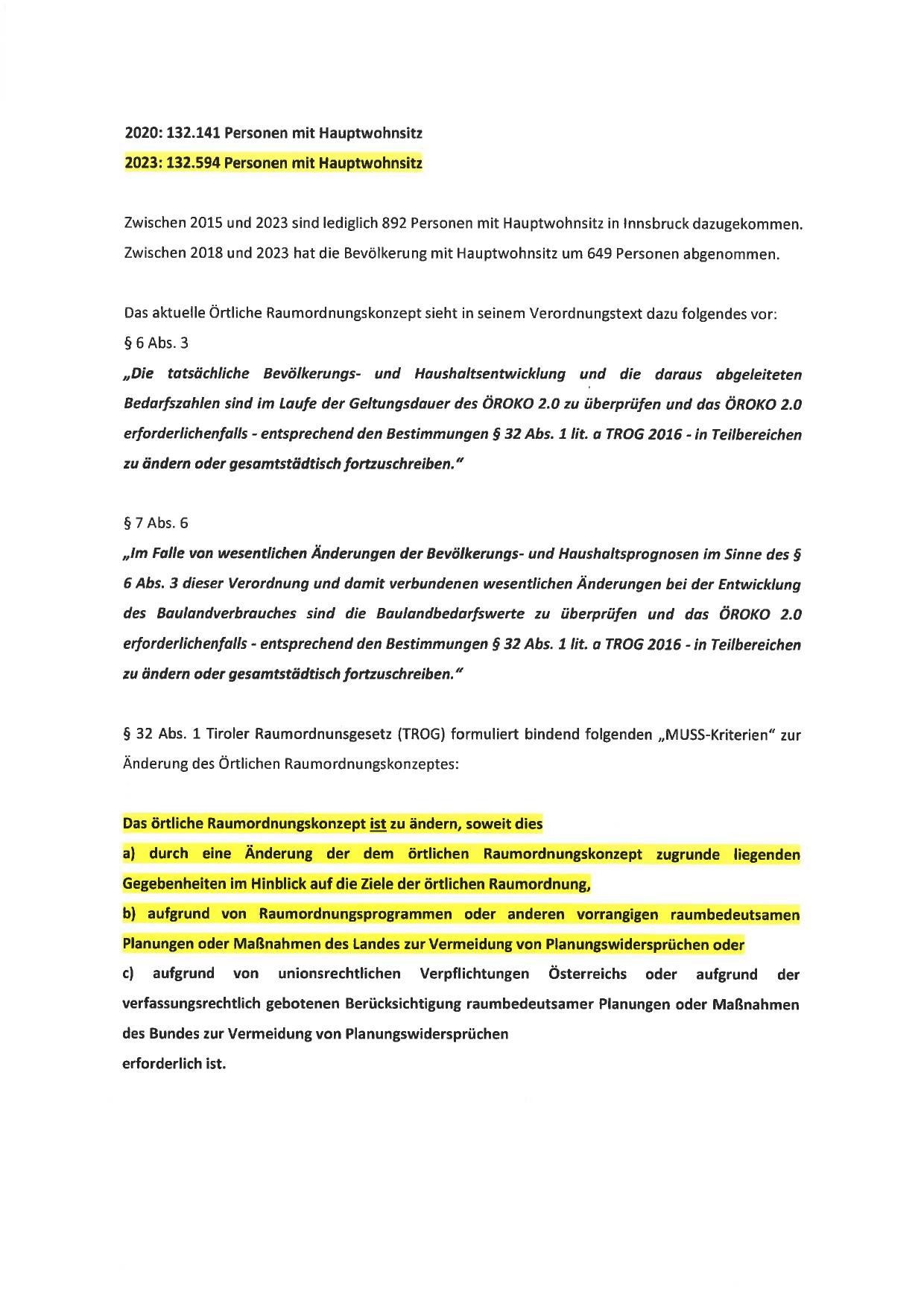 § 32 Abs. l Tiroler Raumordnunsgesetz (TROG) formuliert bindend folgenden "MUSS-Kriterien" zur