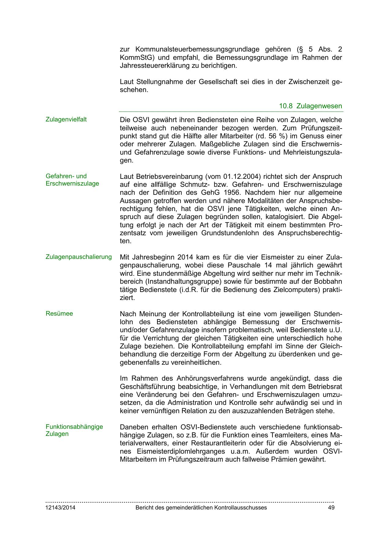 Daneben erhalten OSVI-Bedienstete auch verschiedene funktionsabhängige Zulagen, so z.B. für die Funktion eines Teamleiters, eines Materialverwalters, einer Restaurantleiterin oder für die Absolvierung eines Eismeisterdiplomlehrganges u.a.m. Außerdem wurden OSVIMitarbeitern im Prüfungszeitraum auch fallweise Prämien gewährt.
