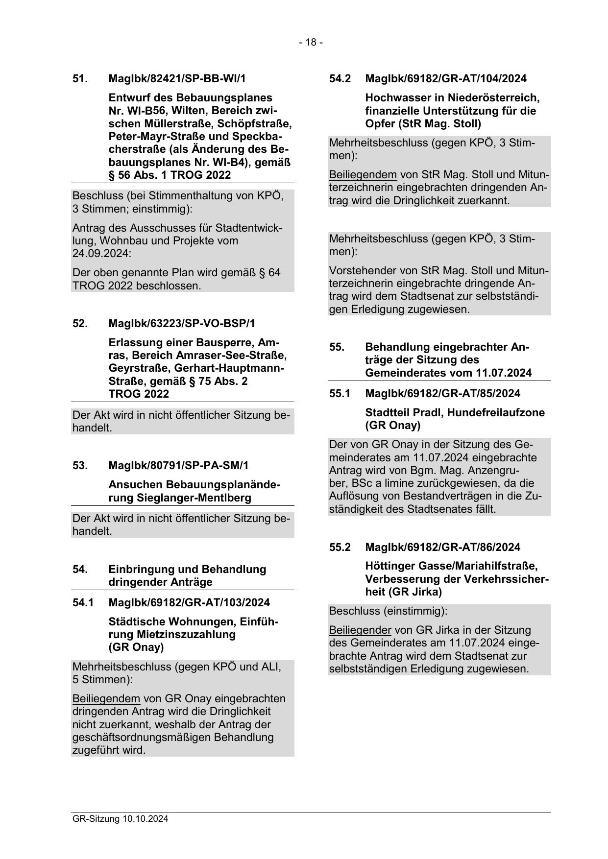 Mehrheitsbeschluss (gegen KPÖ, 3 Stimmen):