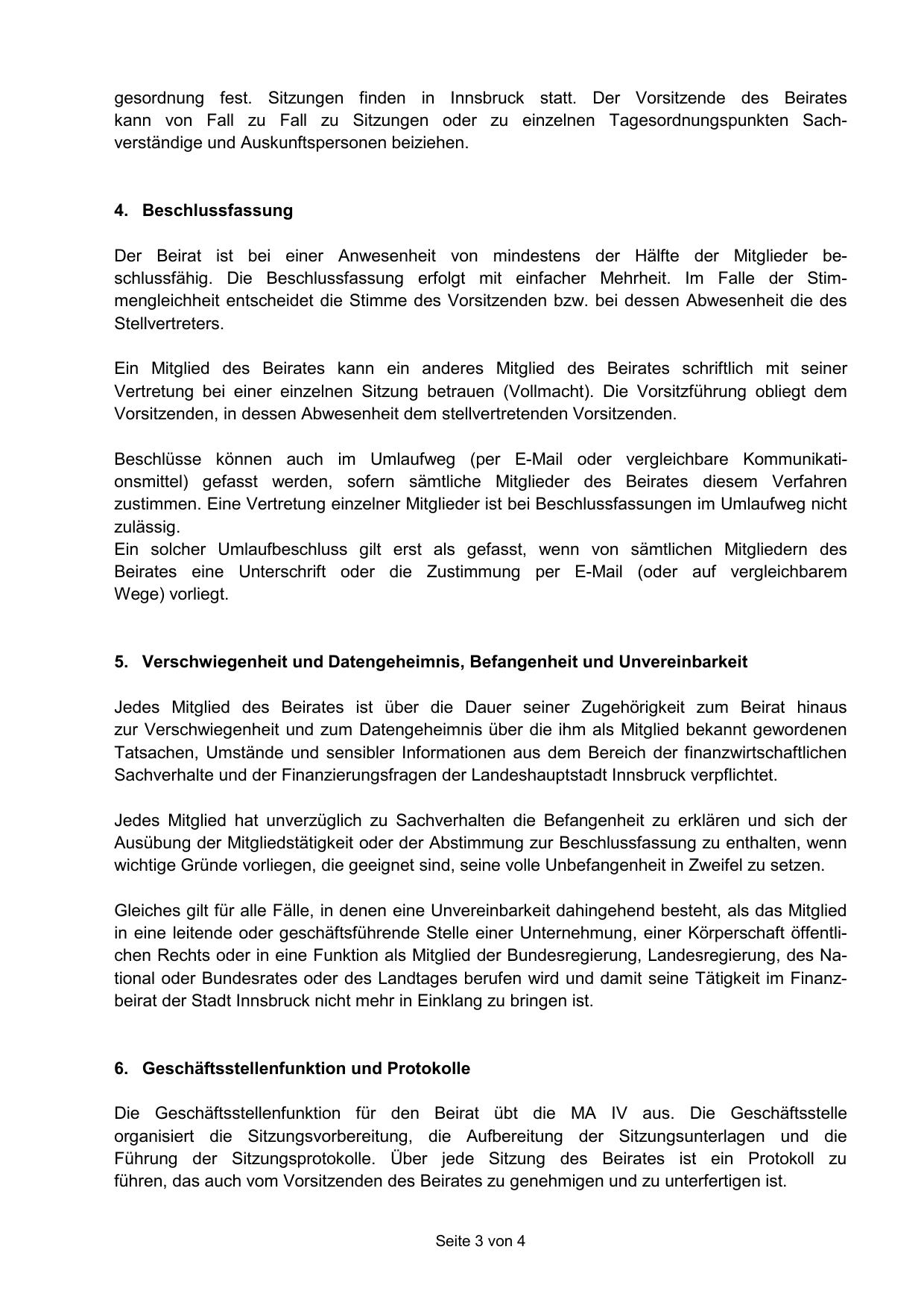 gesordnung fest. Sitzungen finden in Innsbruck statt. Der Vorsitzende des Beirates