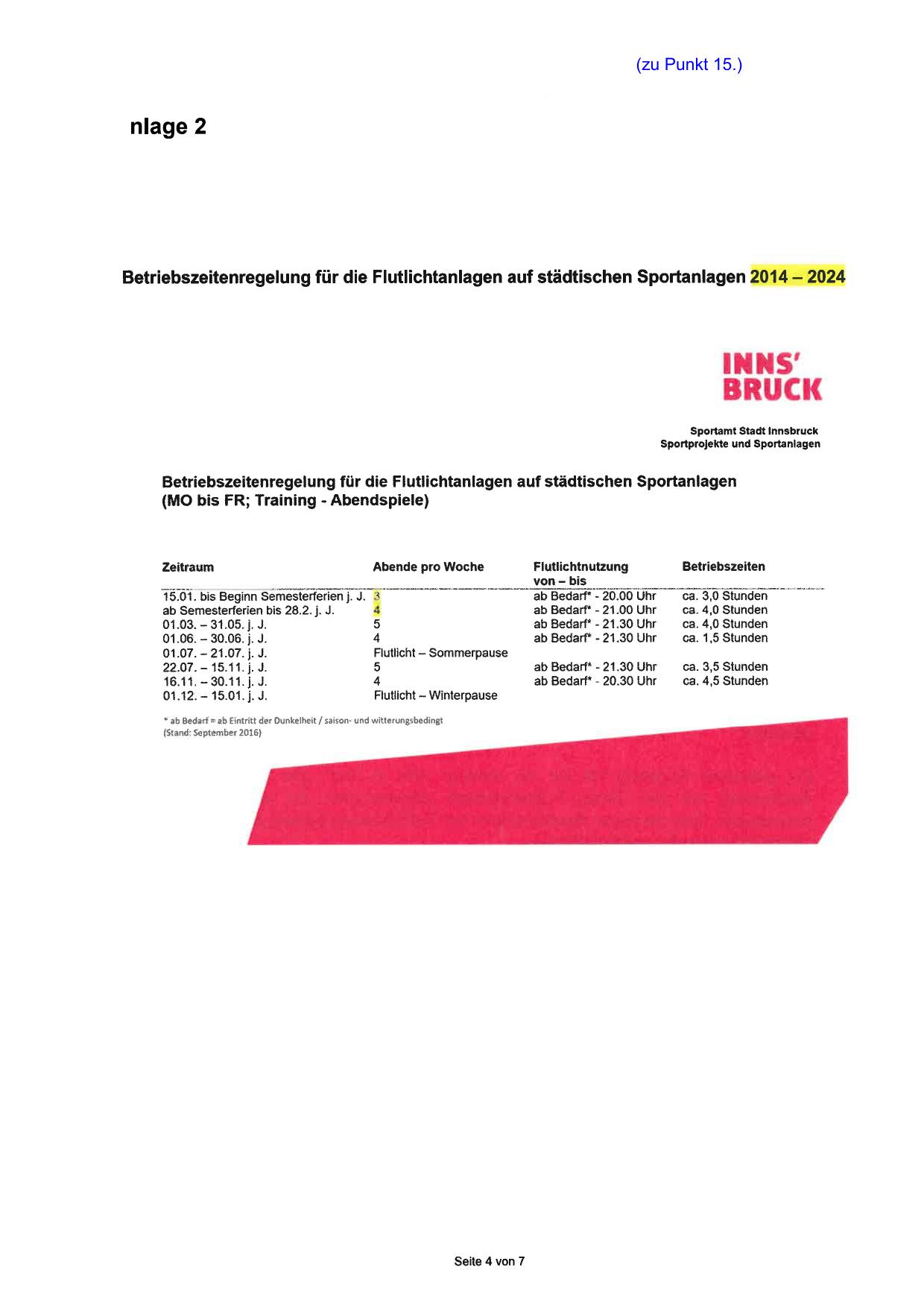 Betriebszeitenregelung für die Flutlichtanlagen auf städtischen Sportanlagen 2014- 2024