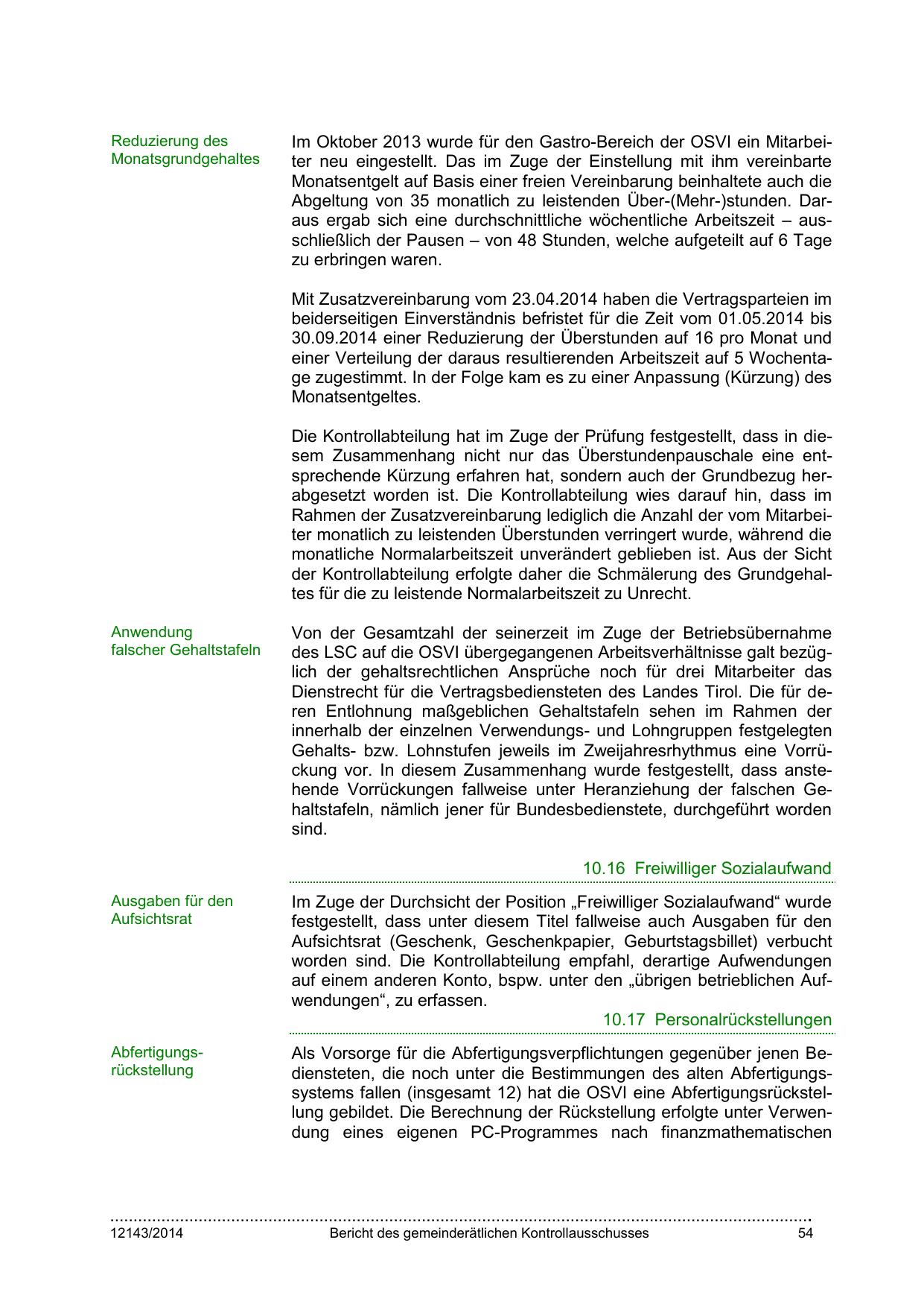 Im Zuge der Durchsicht der Position „Freiwilliger Sozialaufwand“ wurde