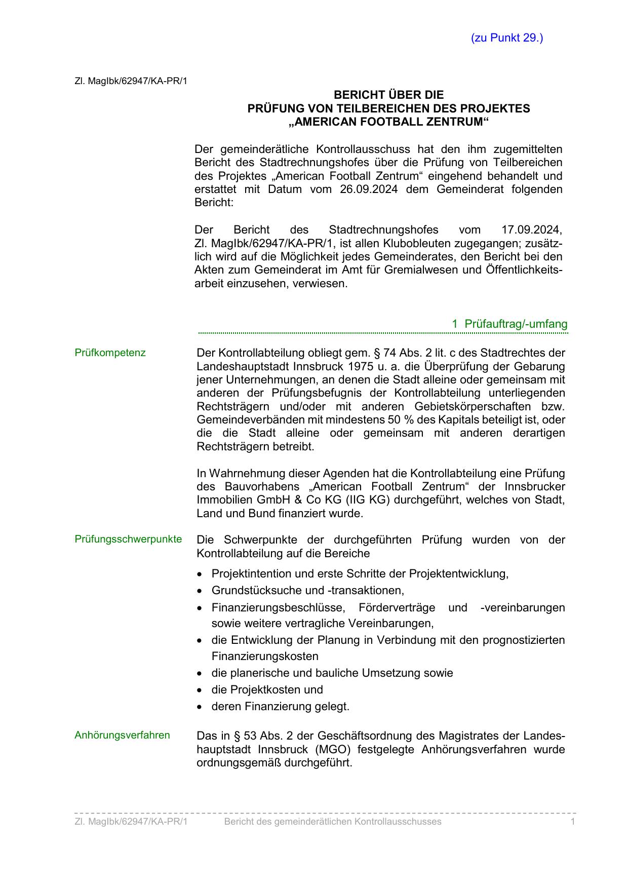 Zl. MagIbk/62947/KA-PR/1, ist allen Klubobleuten zugegangen; zusätzlich wird auf die Möglichkeit jedes Gemeinderates, den Bericht bei den