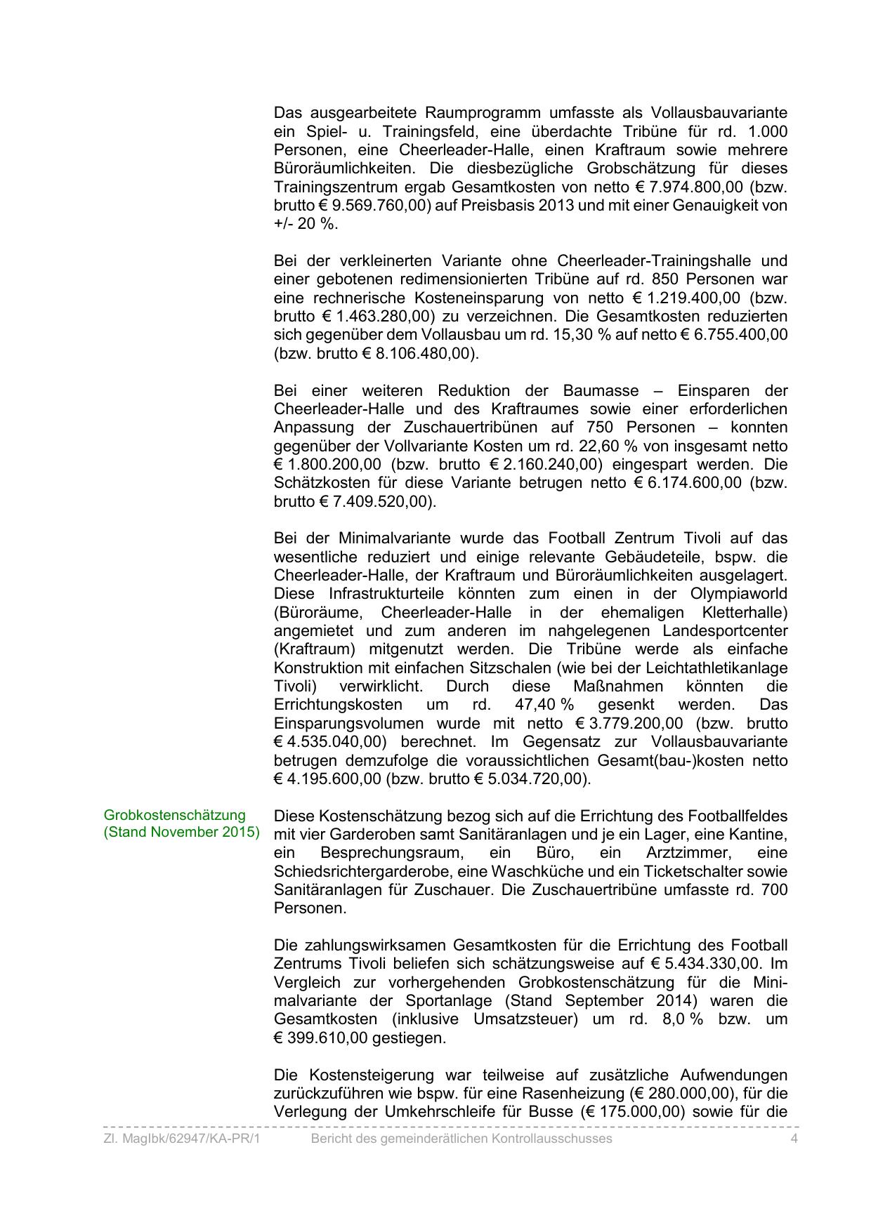 Trainingszentrum ergab Gesamtkosten von netto € 7.974.800,00 (bzw.