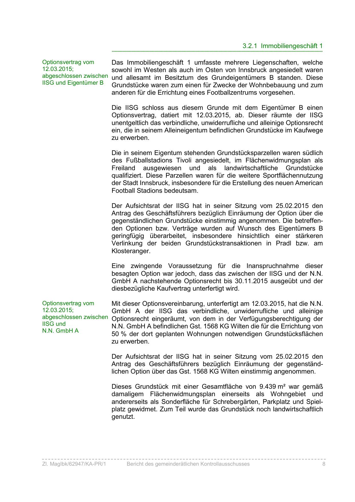 gegenständlichen Grundstücke einstimmig angenommen. Die betreffenden Optionen bzw. Verträge wurden auf Wunsch des Eigentümers B