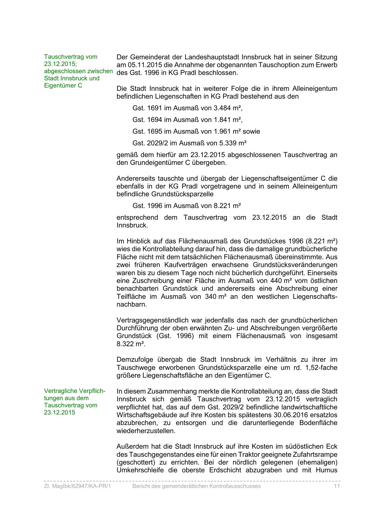 Innsbruck sich gemäß Tauschvertrag vom 23.12.2015 vertraglich