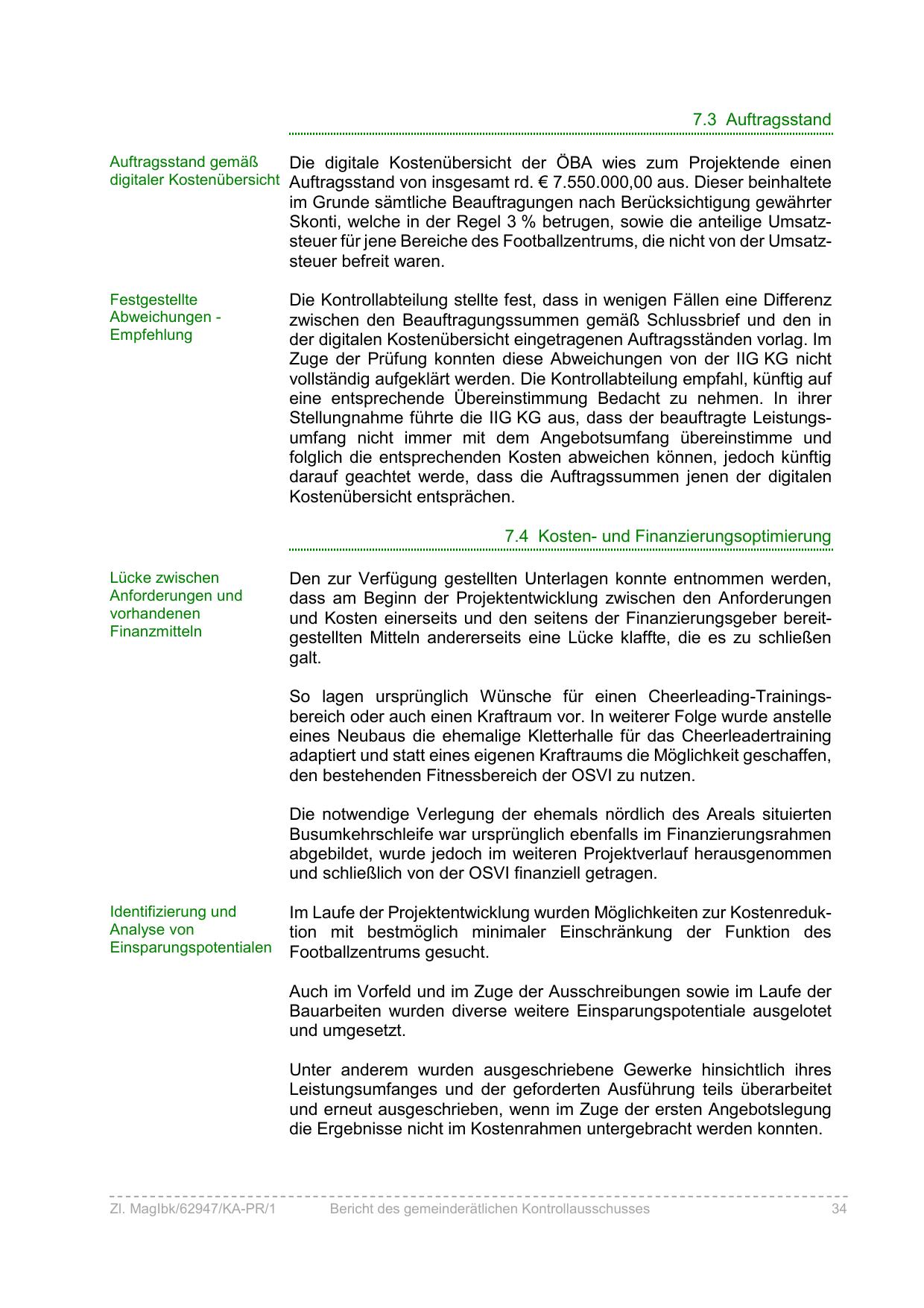 Stellungnahme führte die IIG KG aus, dass der beauftragte Leistungsumfang nicht immer mit dem Angebotsumfang übereinstimme und