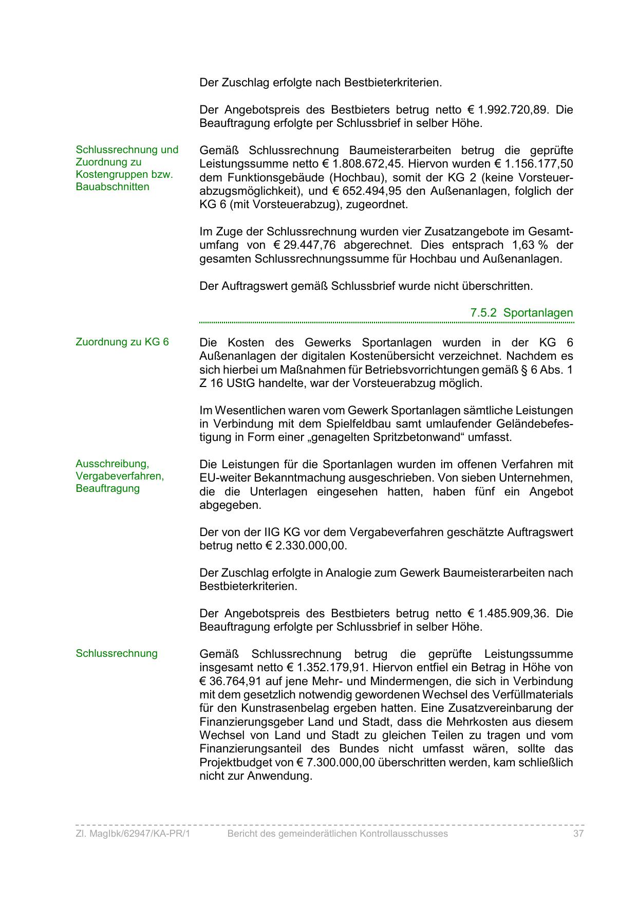 Der Angebotspreis des Bestbieters betrug netto € 1.992.720,89. Die