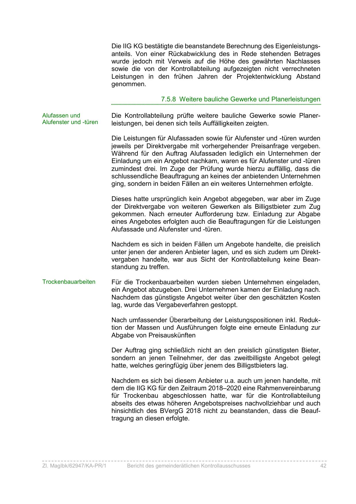 unter jenen der anderen Anbieter lagen, und es sich zudem um Direktvergaben handelte, war aus Sicht der Kontrollabteilung keine Beanstandung zu treffen.