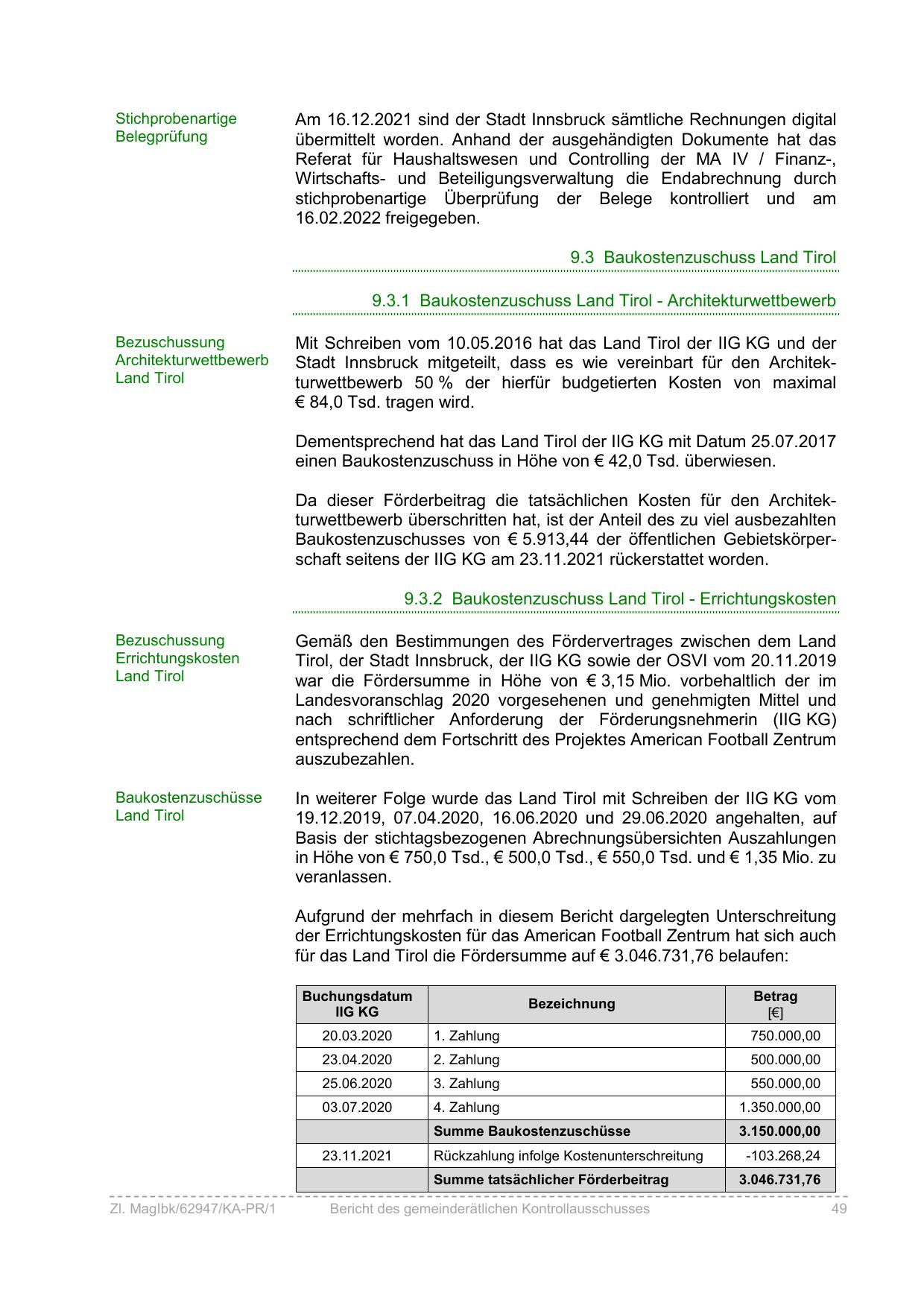 9.3.1 Baukostenzuschuss Land Tirol - Architekturwettbewerb