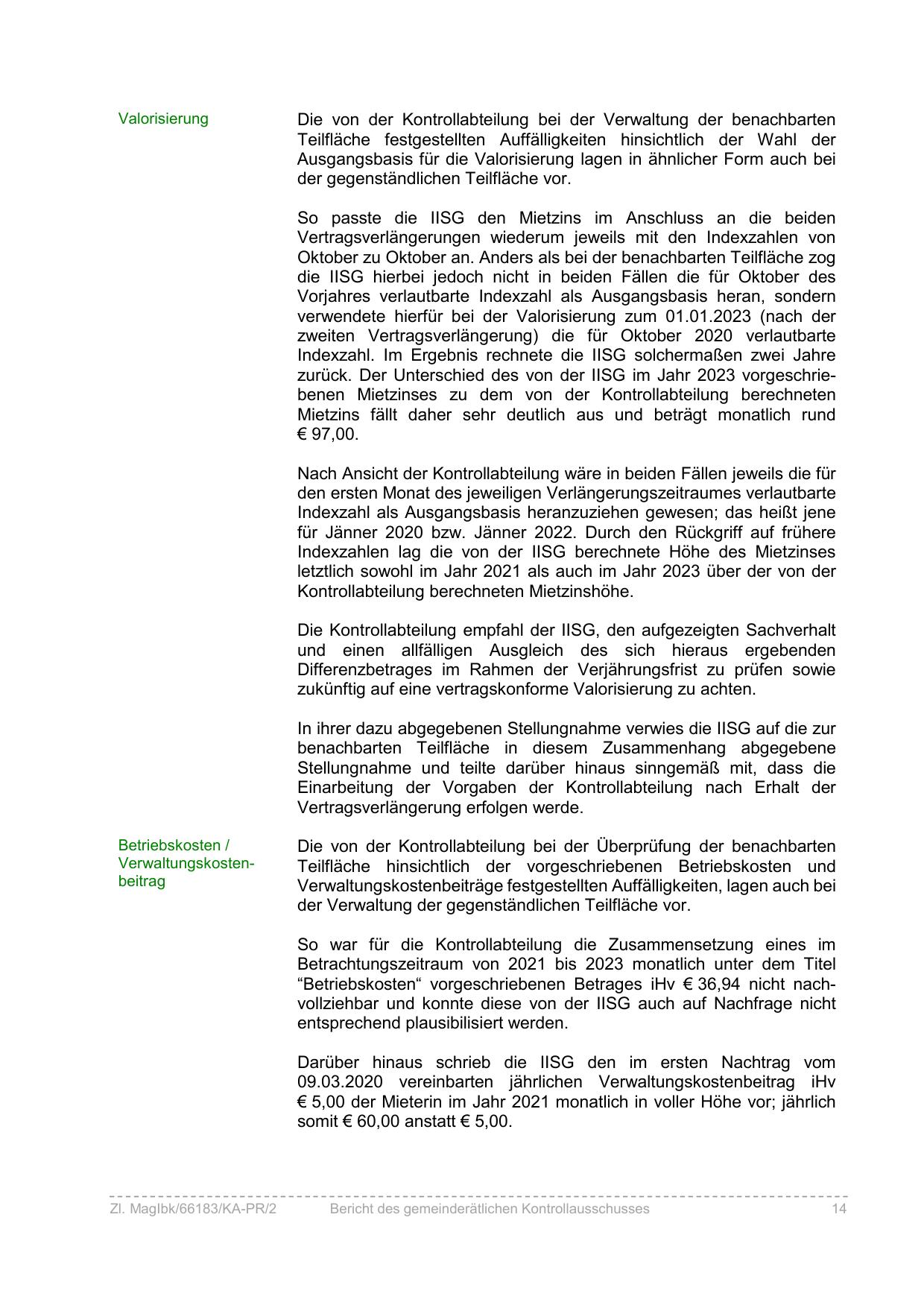 zurück. Der Unterschied des von der IISG im Jahr 2023 vorgeschriebenen Mietzinses zu dem von der Kontrollabteilung berechneten