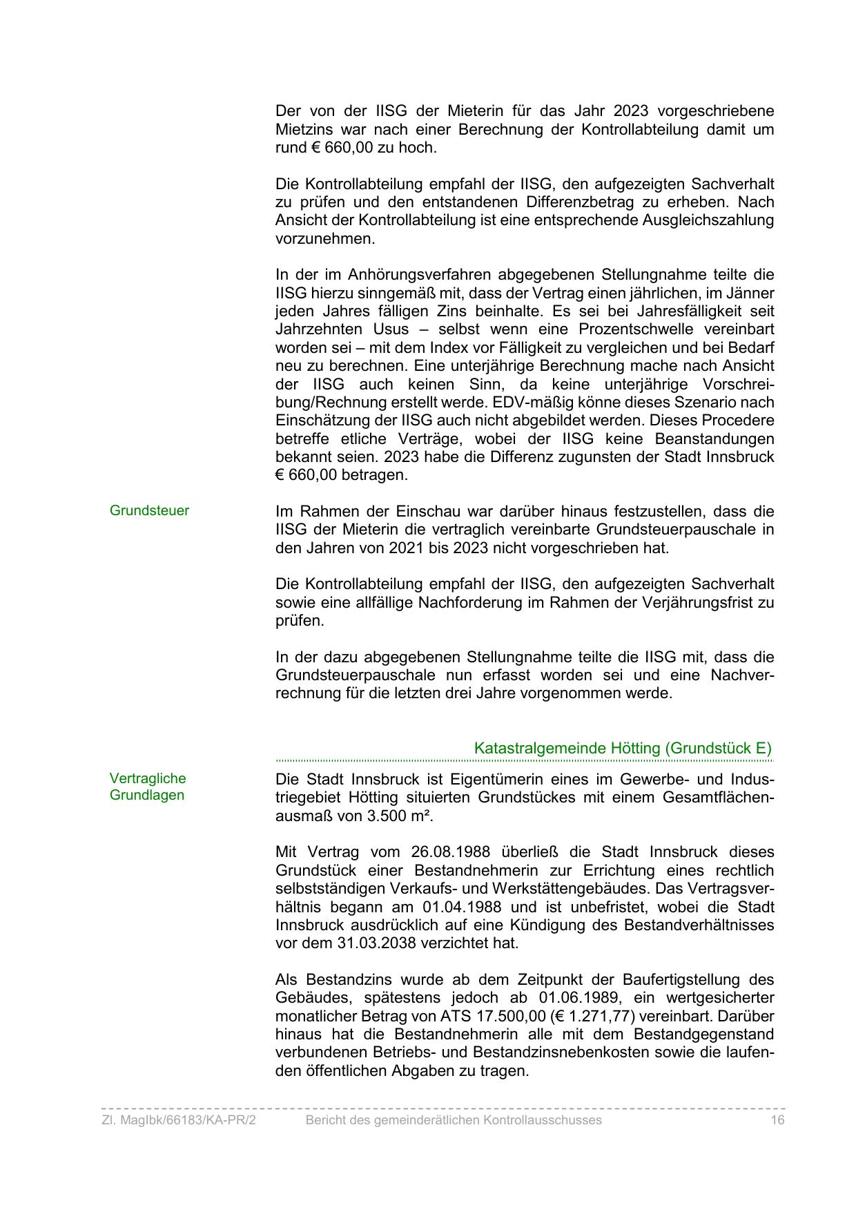 Die Stadt Innsbruck ist Eigentümerin eines im Gewerbe- und Industriegebiet Hötting situierten Grundstückes mit einem Gesamtflächenausmaß von 3.500 m².