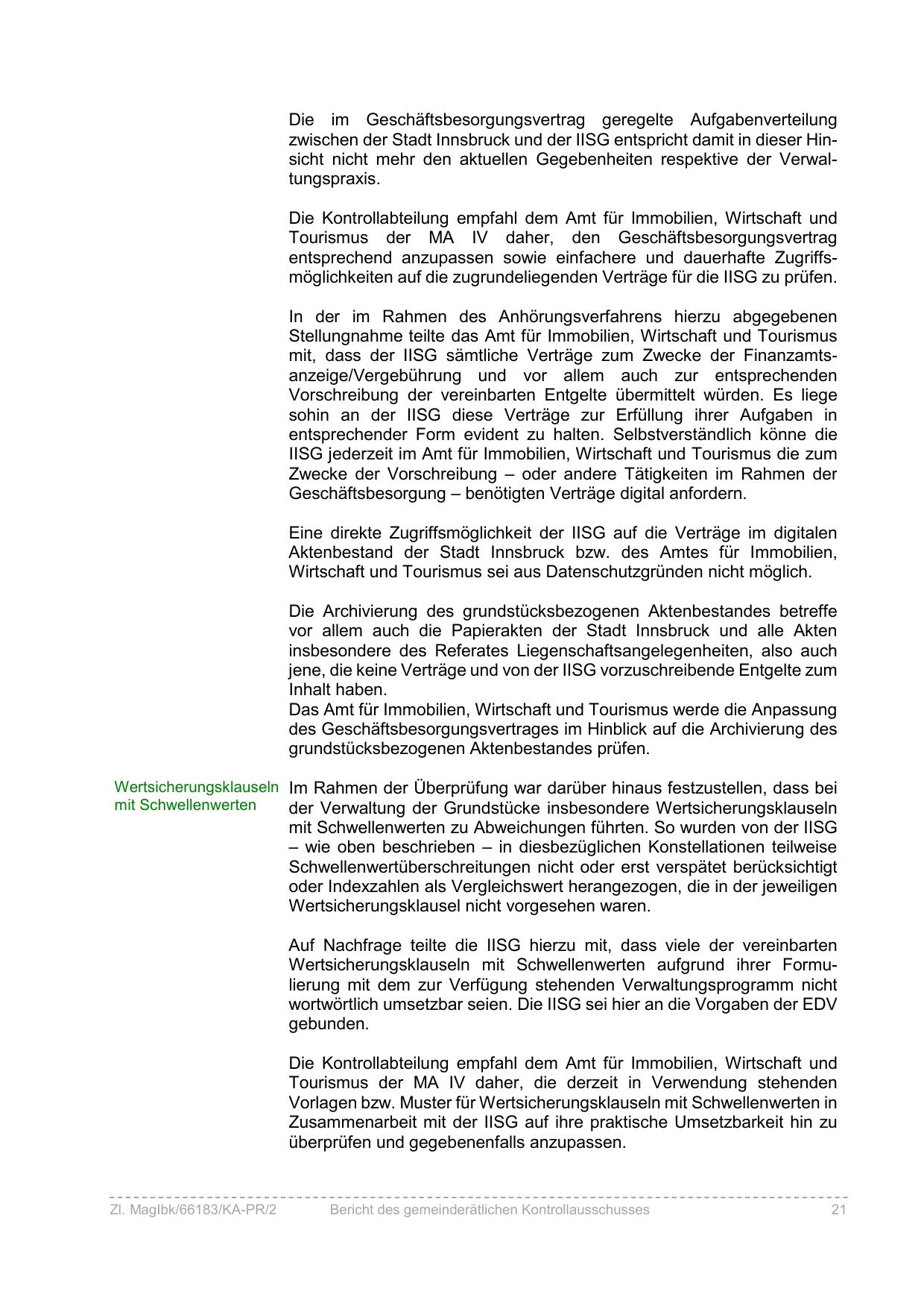 zwischen der Stadt Innsbruck und der IISG entspricht damit in dieser Hinsicht nicht mehr den aktuellen Gegebenheiten respektive der Verwaltungspraxis.
