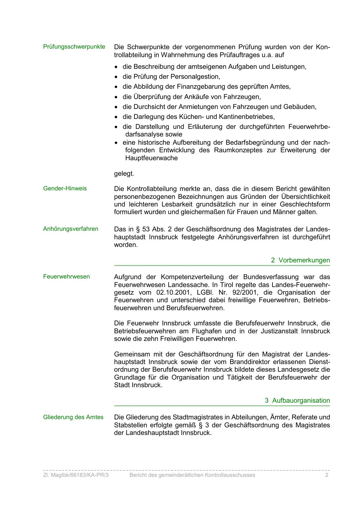 Gemeinsam mit der Geschäftsordnung für den Magistrat der Landeshauptstadt Innsbruck sowie der vom Branddirektor erlassenen Dienstordnung der Berufsfeuerwehr Innsbruck bildete dieses Landesgesetz die
