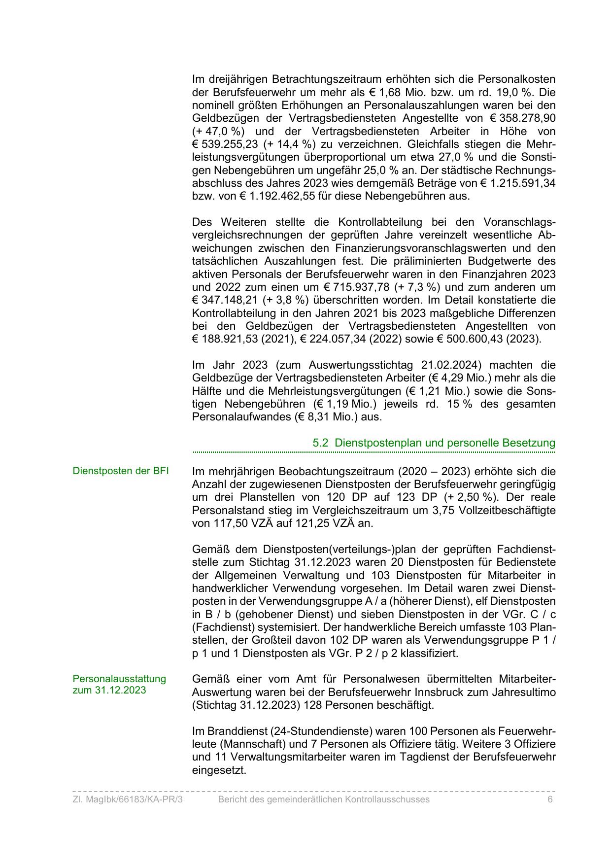 der Berufsfeuerwehr um mehr als € 1,68 Mio. bzw. um rd. 19,0 %. Die