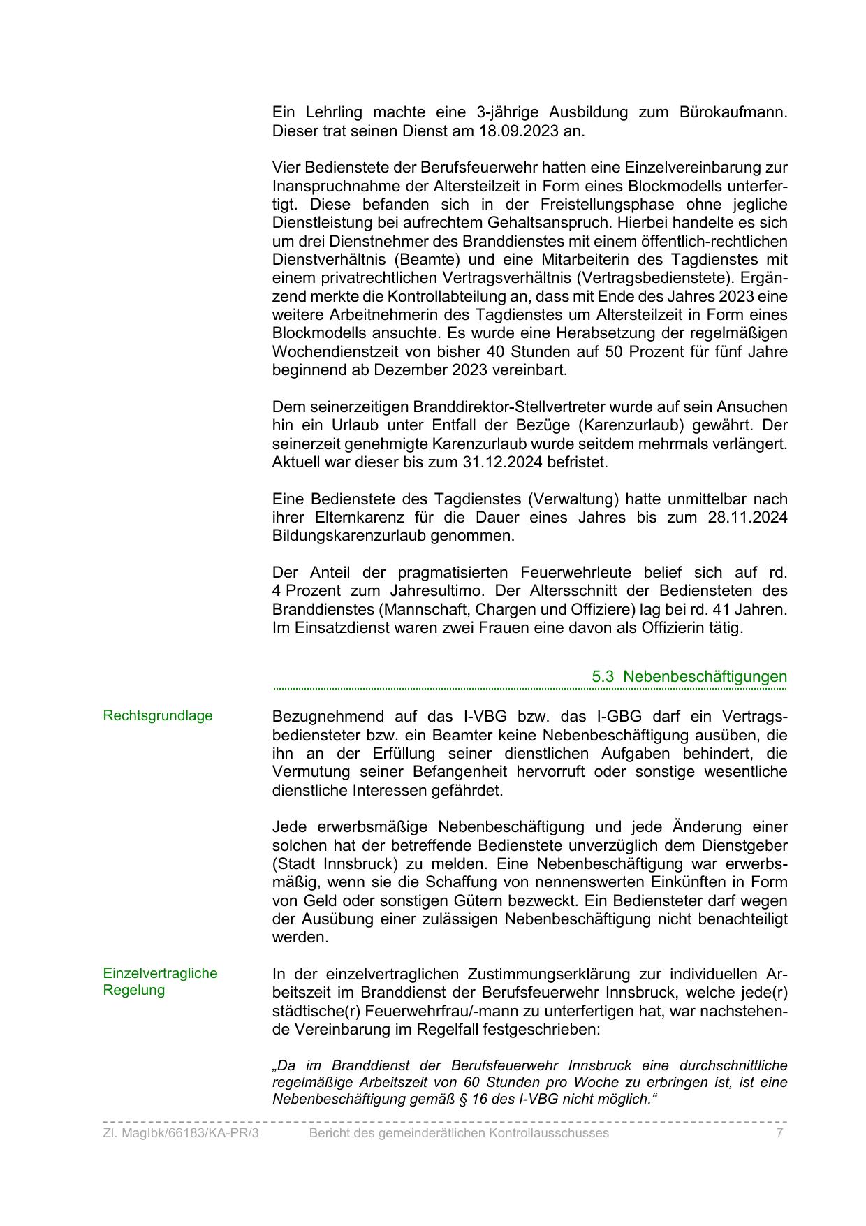 einem privatrechtlichen Vertragsverhältnis (Vertragsbedienstete). Ergänzend merkte die Kontrollabteilung an, dass mit Ende des Jahres 2023 eine