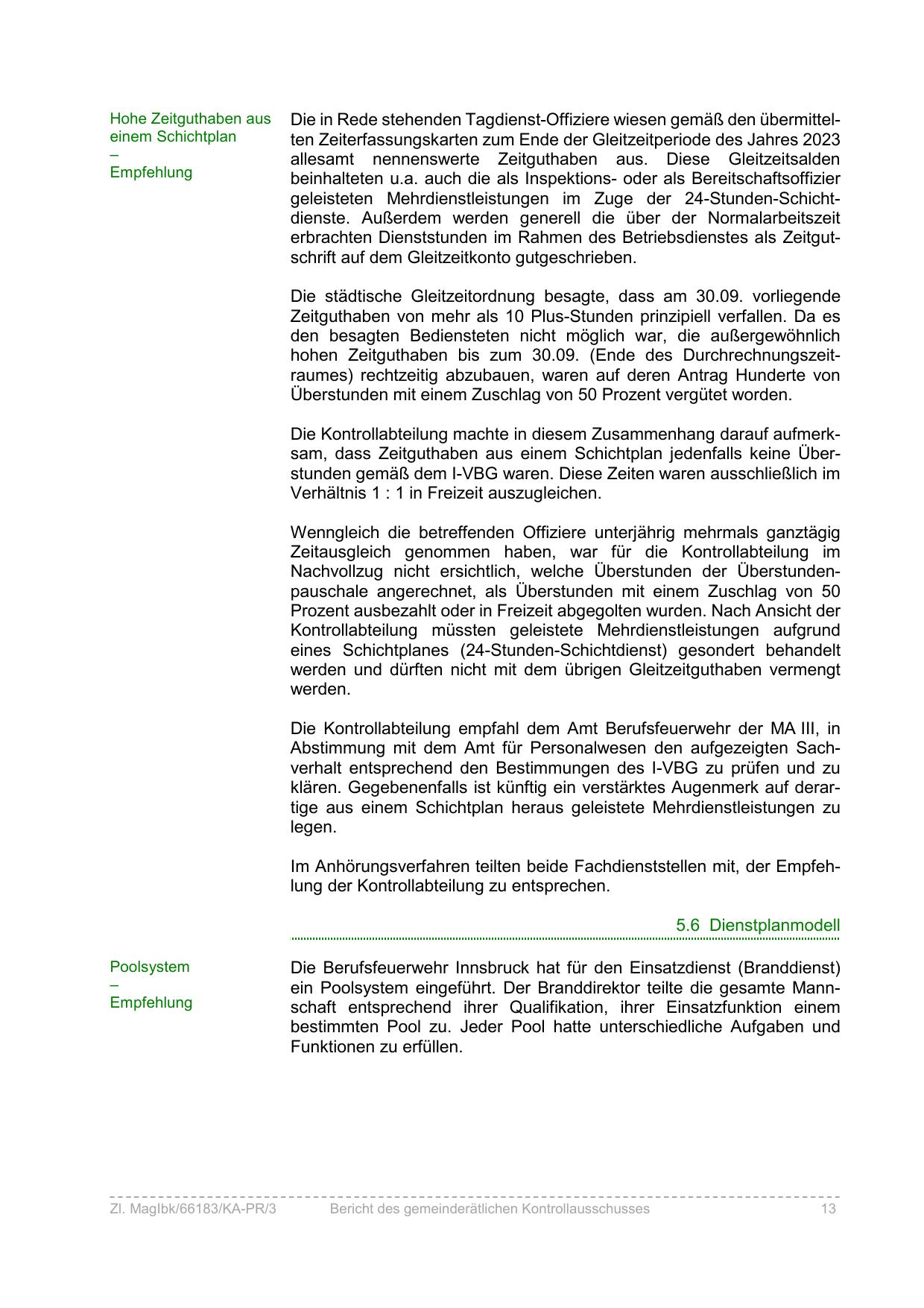 Die Kontrollabteilung machte in diesem Zusammenhang darauf aufmerksam, dass Zeitguthaben aus einem Schichtplan jedenfalls keine Überstunden gemäß dem I-VBG waren. Diese Zeiten waren ausschließlich im