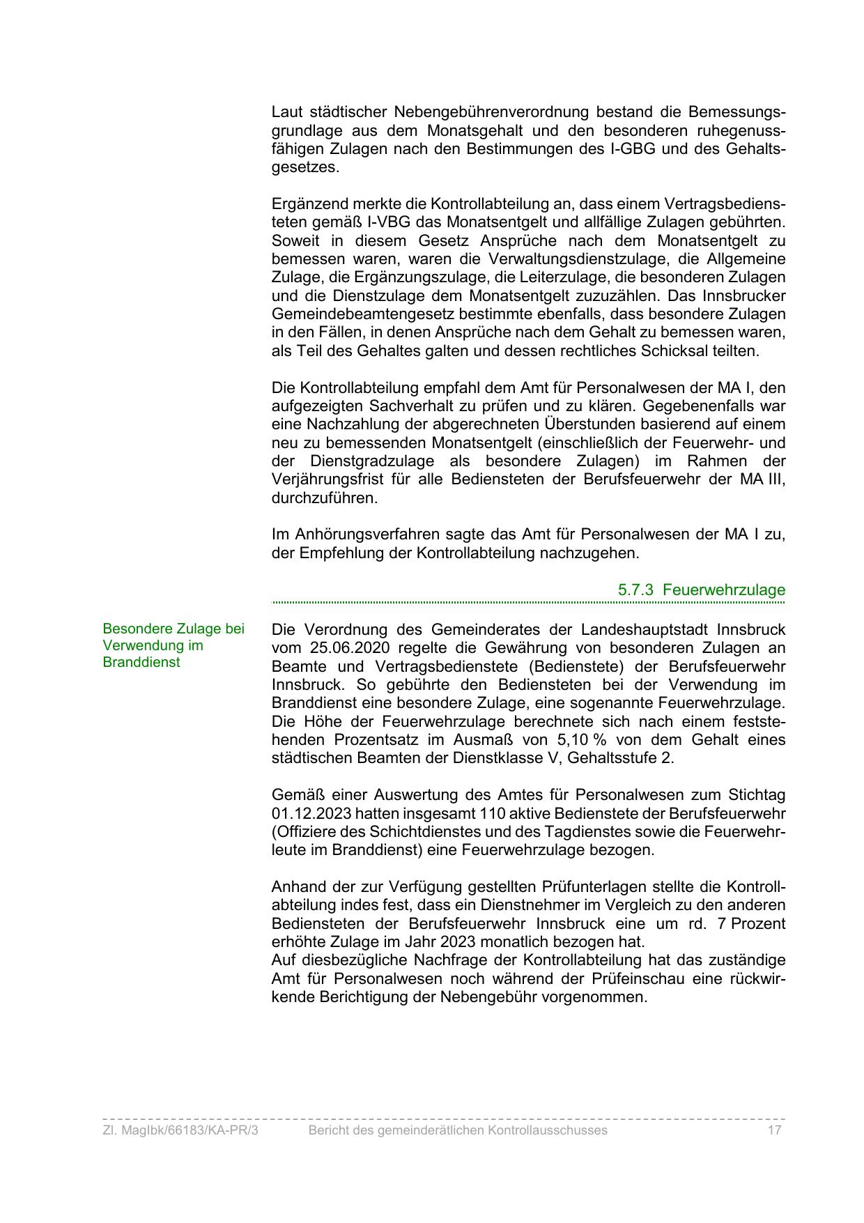 Bediensteten der Berufsfeuerwehr Innsbruck eine um rd. 7 Prozent