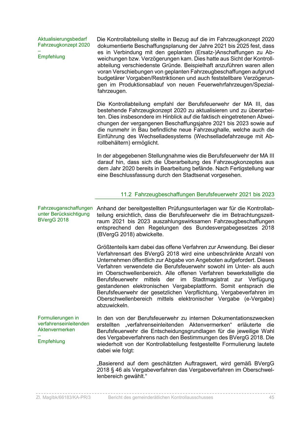 Fahrzeuganschaffungen Anhand der bereitgestellten Prüfungsunterlagen war für die Kontrollabunter Berücksichtigung teilung ersichtlich, dass die Berufsfeuerwehr die im BetrachtungszeitBVergG 2018