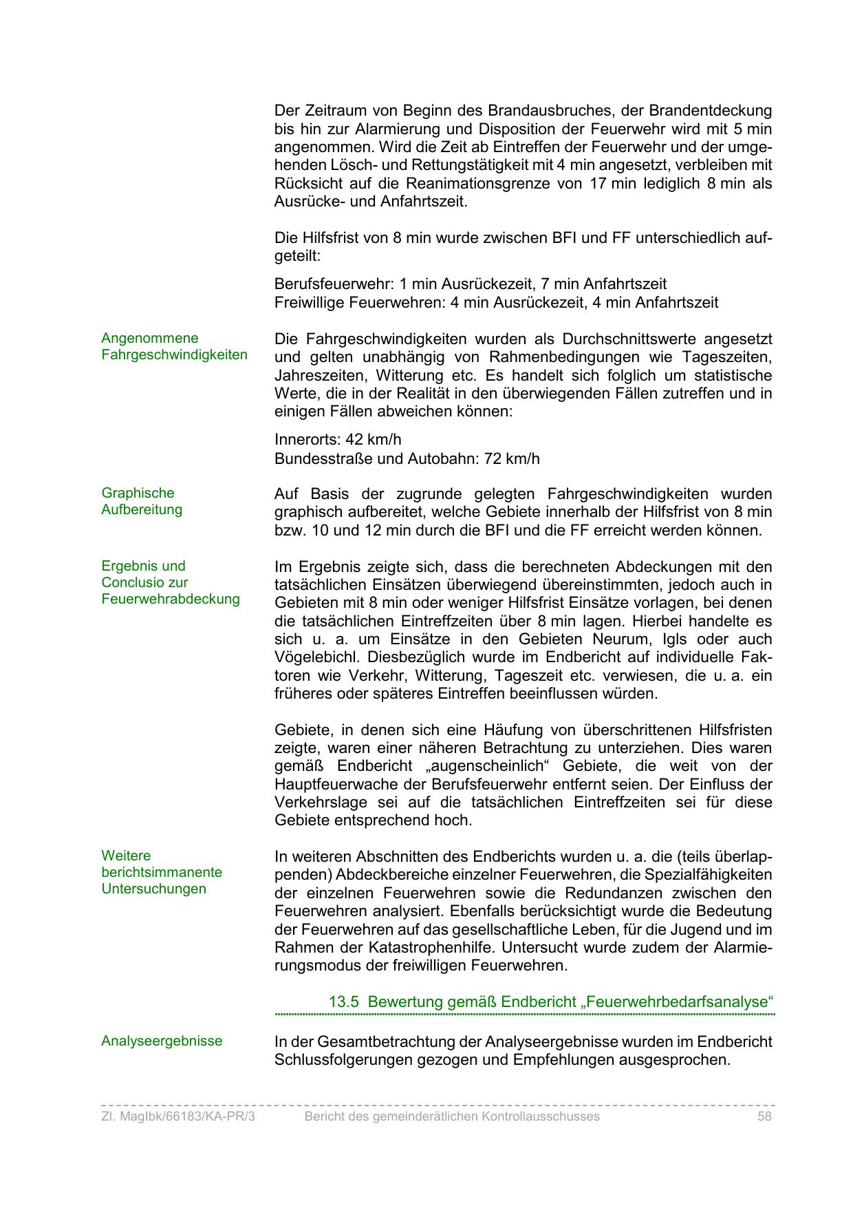 13.5 Bewertung gemäß Endbericht „Feuerwehrbedarfsanalyse“