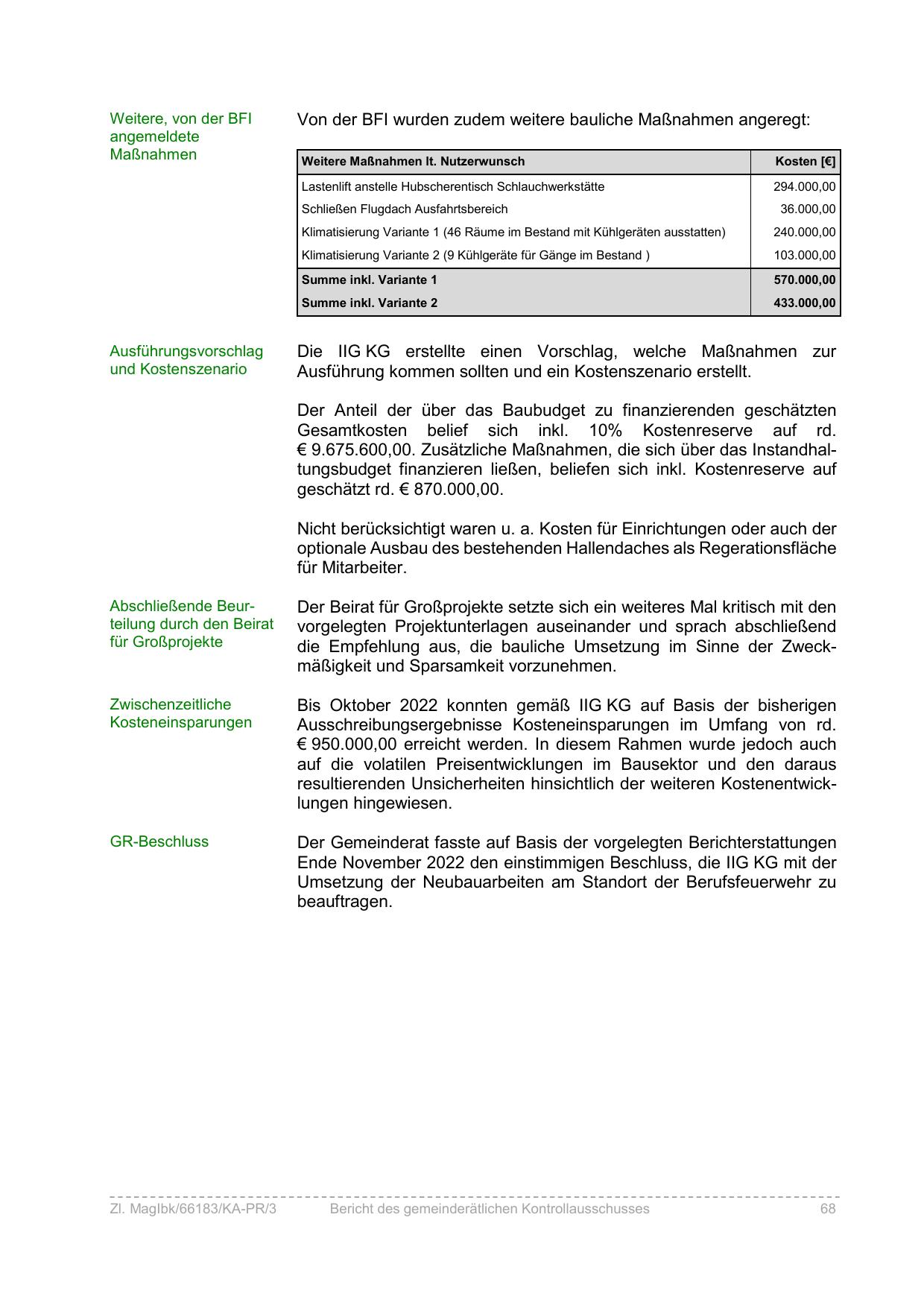 € 9.675.600,00. Zusätzliche Maßnahmen, die sich über das Instandhaltungsbudget finanzieren ließen, beliefen sich inkl. Kostenreserve auf