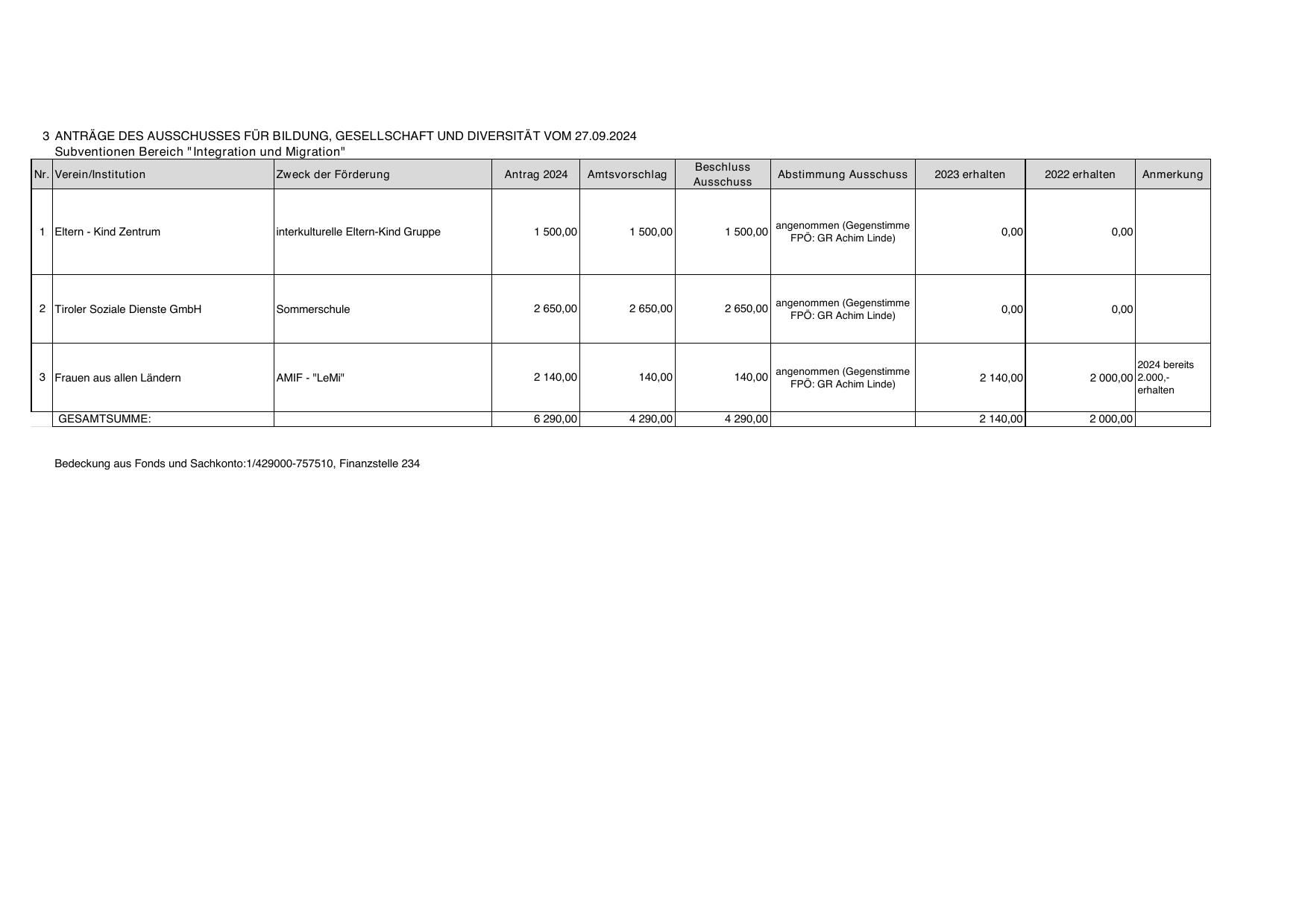 3 ANTRÄGE DES AUSSCHUSSES FÜR BILDUNG, GESELLSCHAFT UND DIVERSITÄT VOM 27.09.2024
