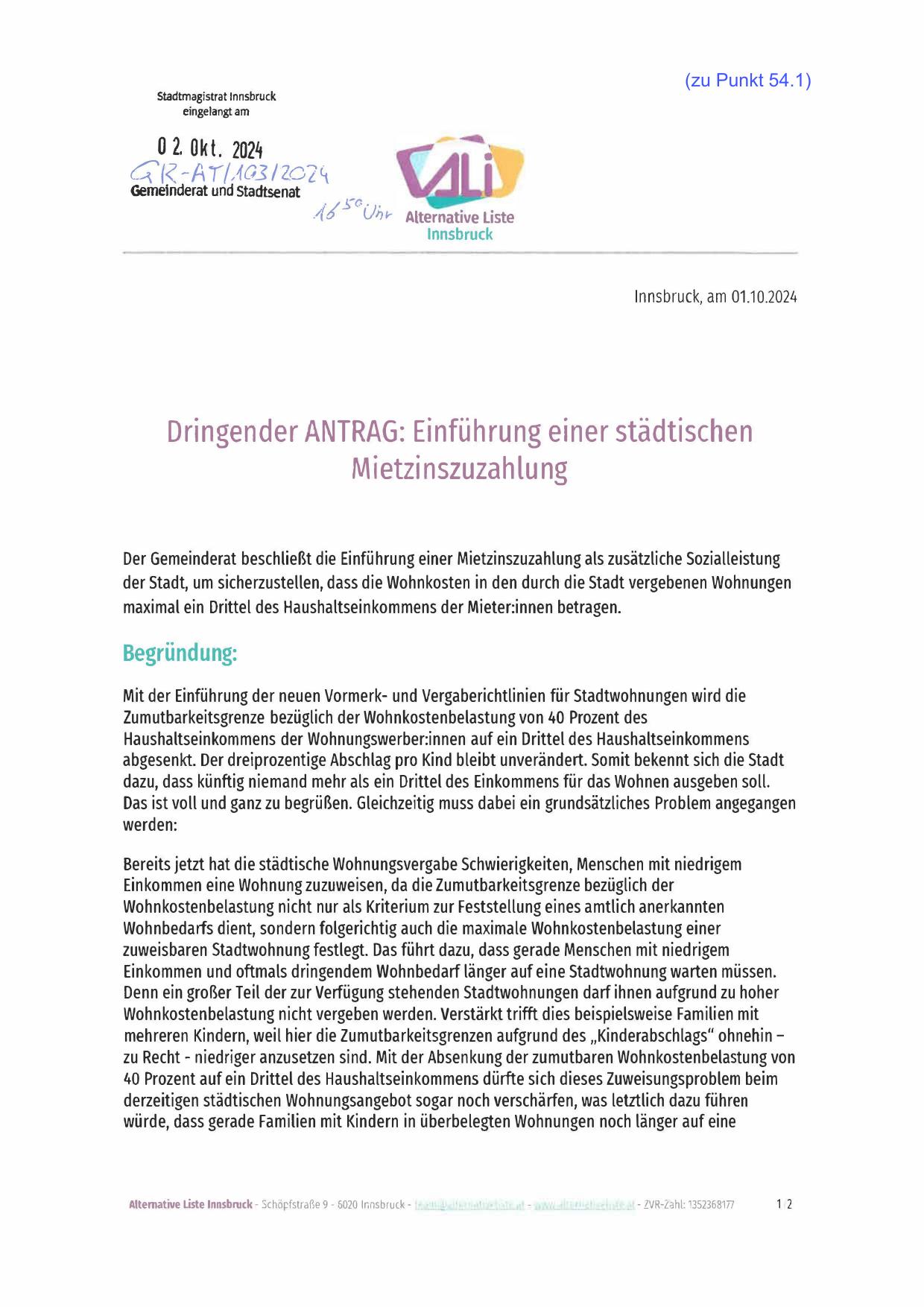 Alternative Liste Innsbruck - Schöpfstraße 9 - 5020 lr.nsbruck -