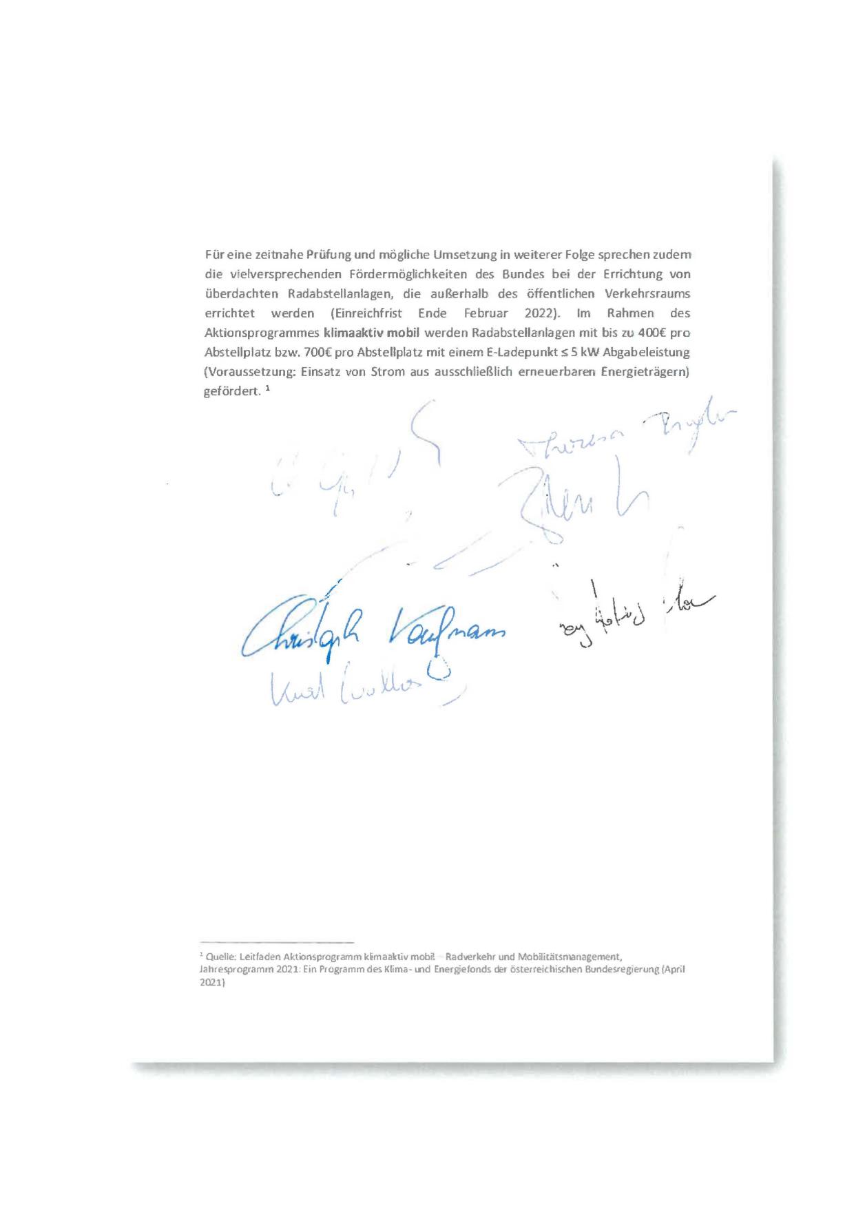 Für eine zeitnahe Prüfung und mögliche Umsetzung in weiterer Folge sprechen zudem