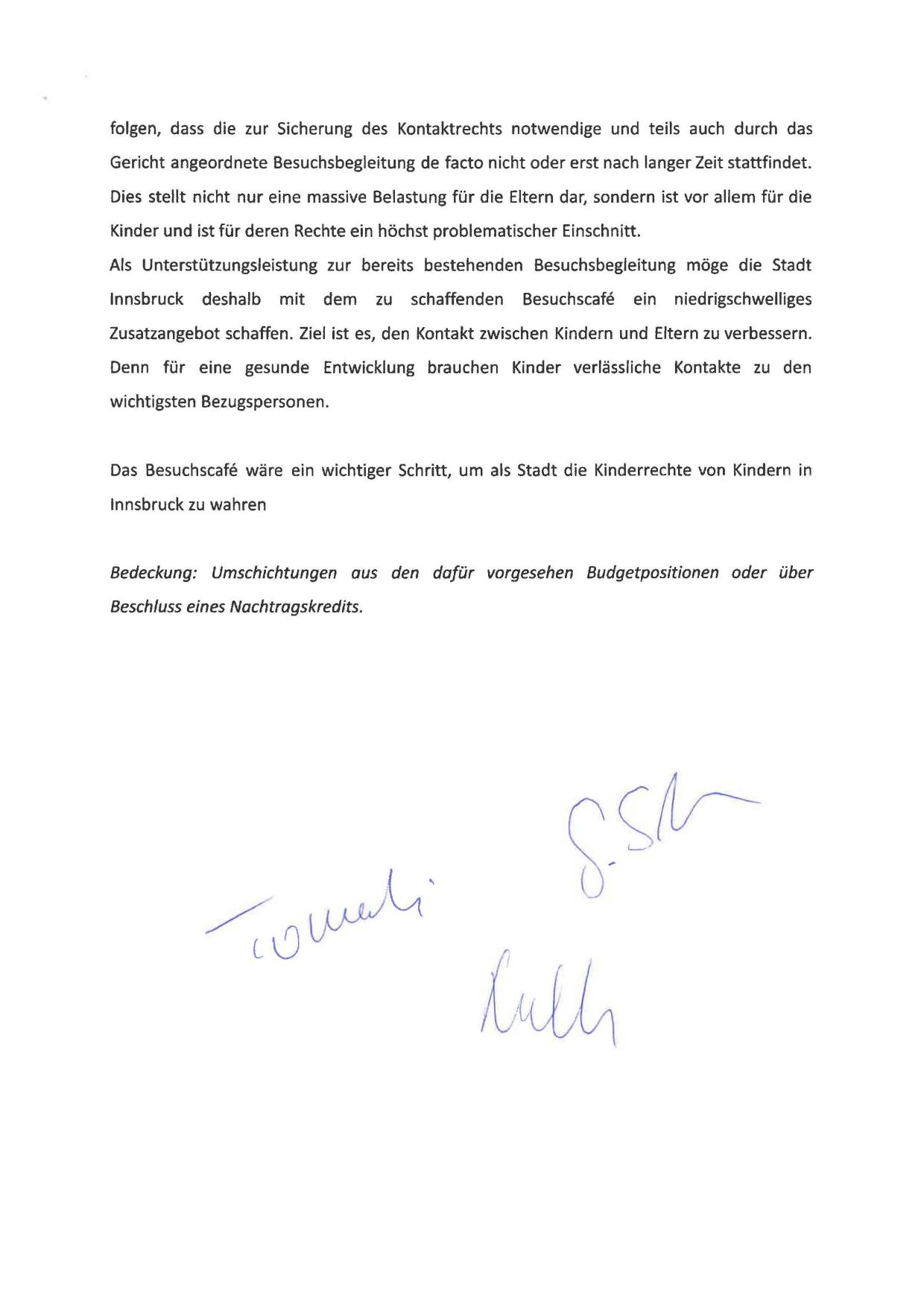 Als Unterstützungsleistung zur bereits bestehenden Besuchsbegleitung möge die Stadt