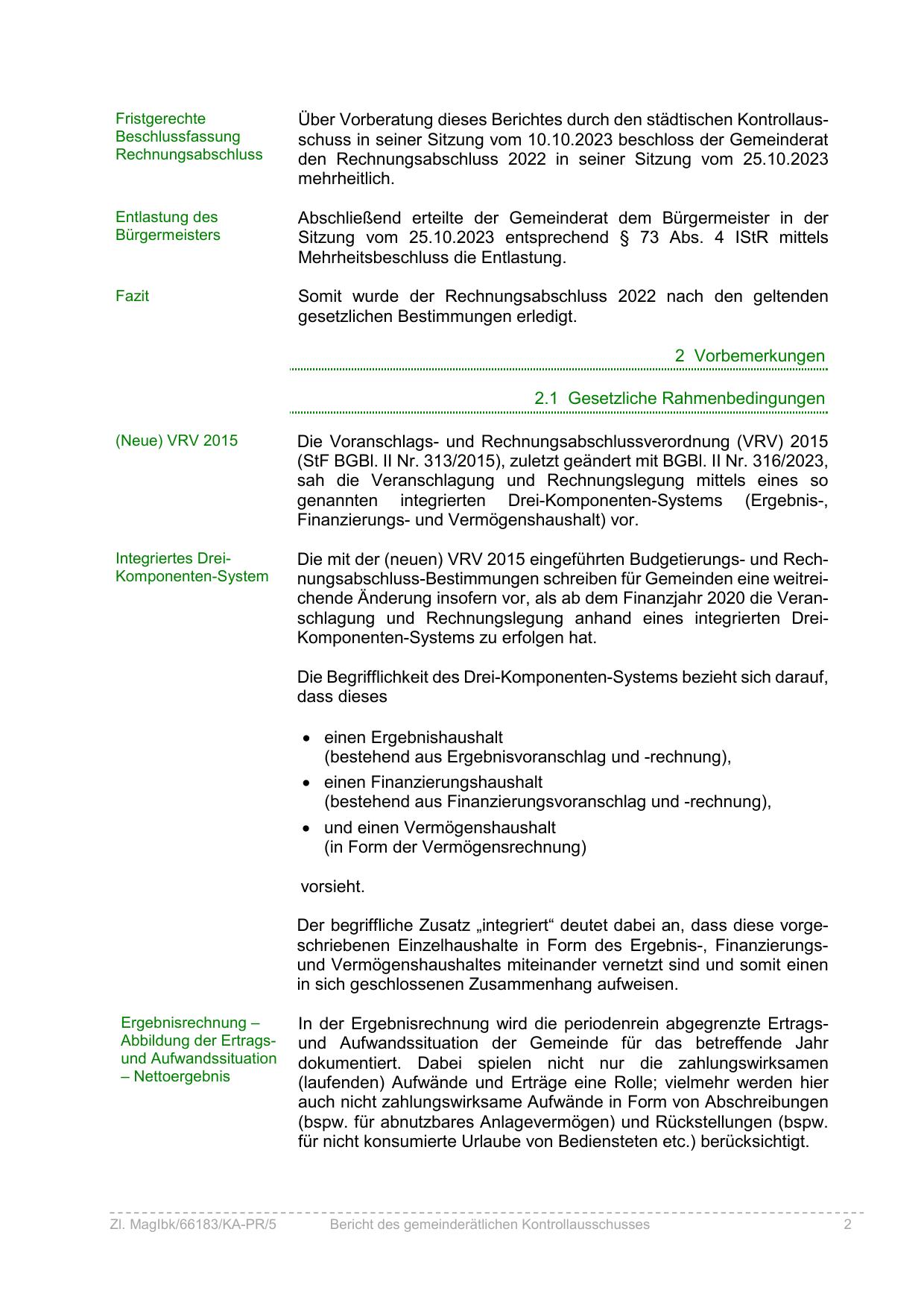 Über Vorberatung dieses Berichtes durch den städtischen Kontrollausschuss in seiner Sitzung vom 10.10.2023 beschloss der Gemeinderat