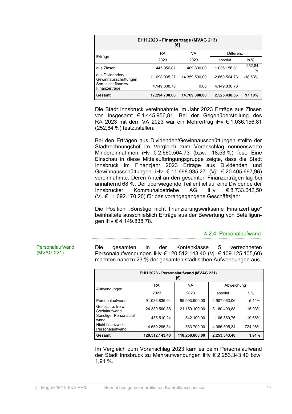 Innsbruck im Finanzjahr 2023 Erträge aus Dividenden und