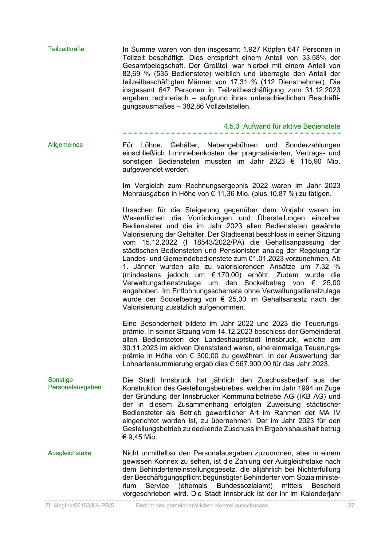 sonstigen Bediensteten mussten im Jahr 2023 € 115,90 Mio.
